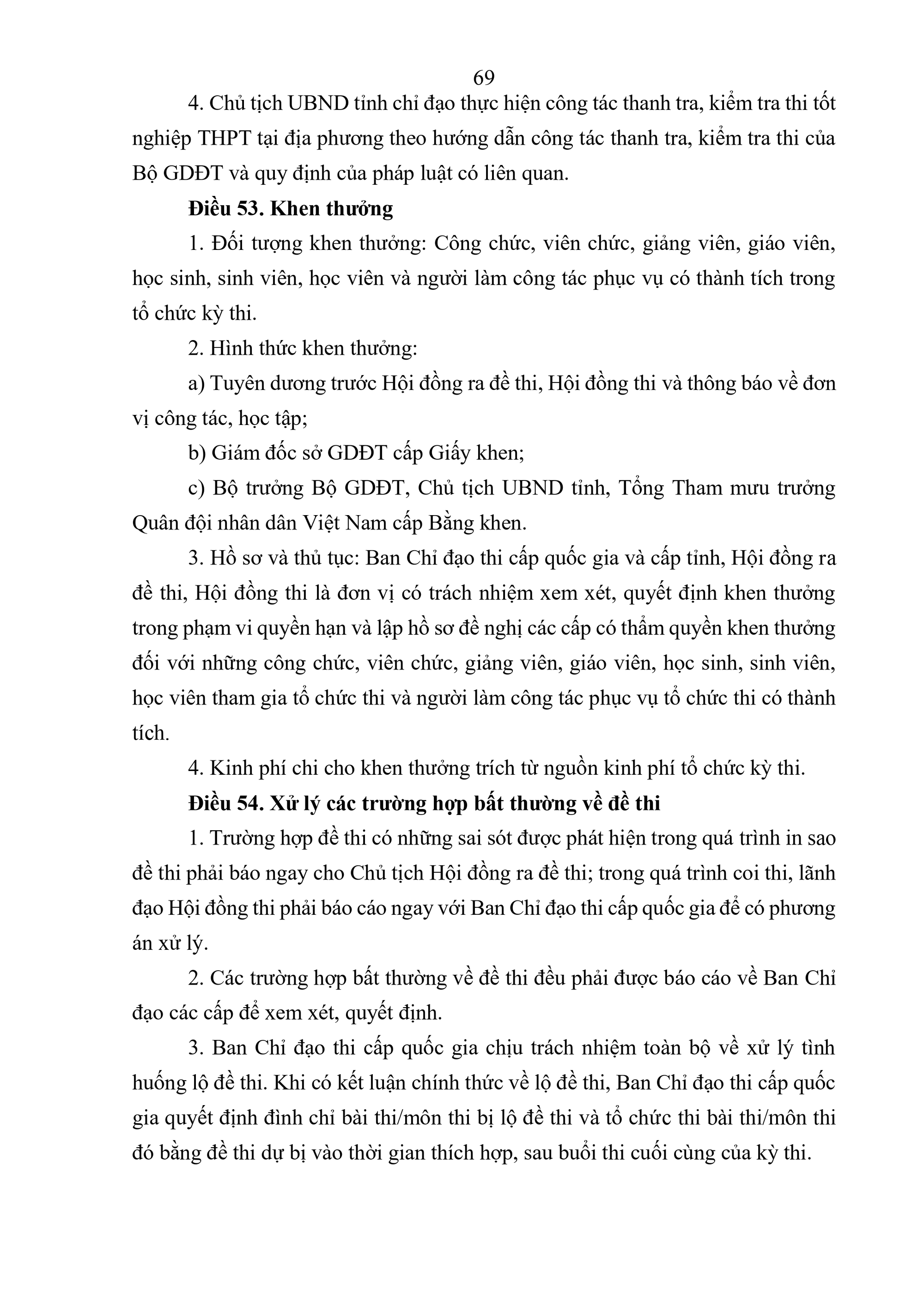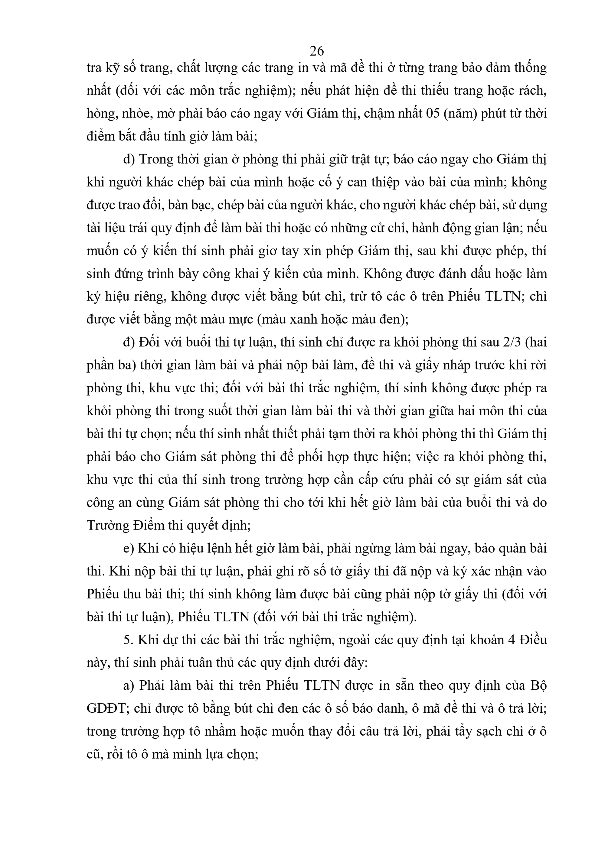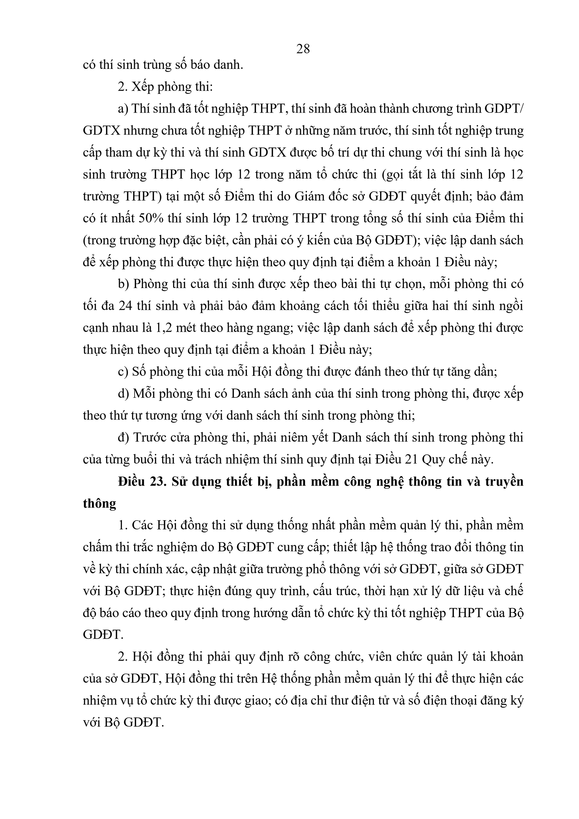 Quy định về tổ chức thi tốt nghiệp trung học phổ thông