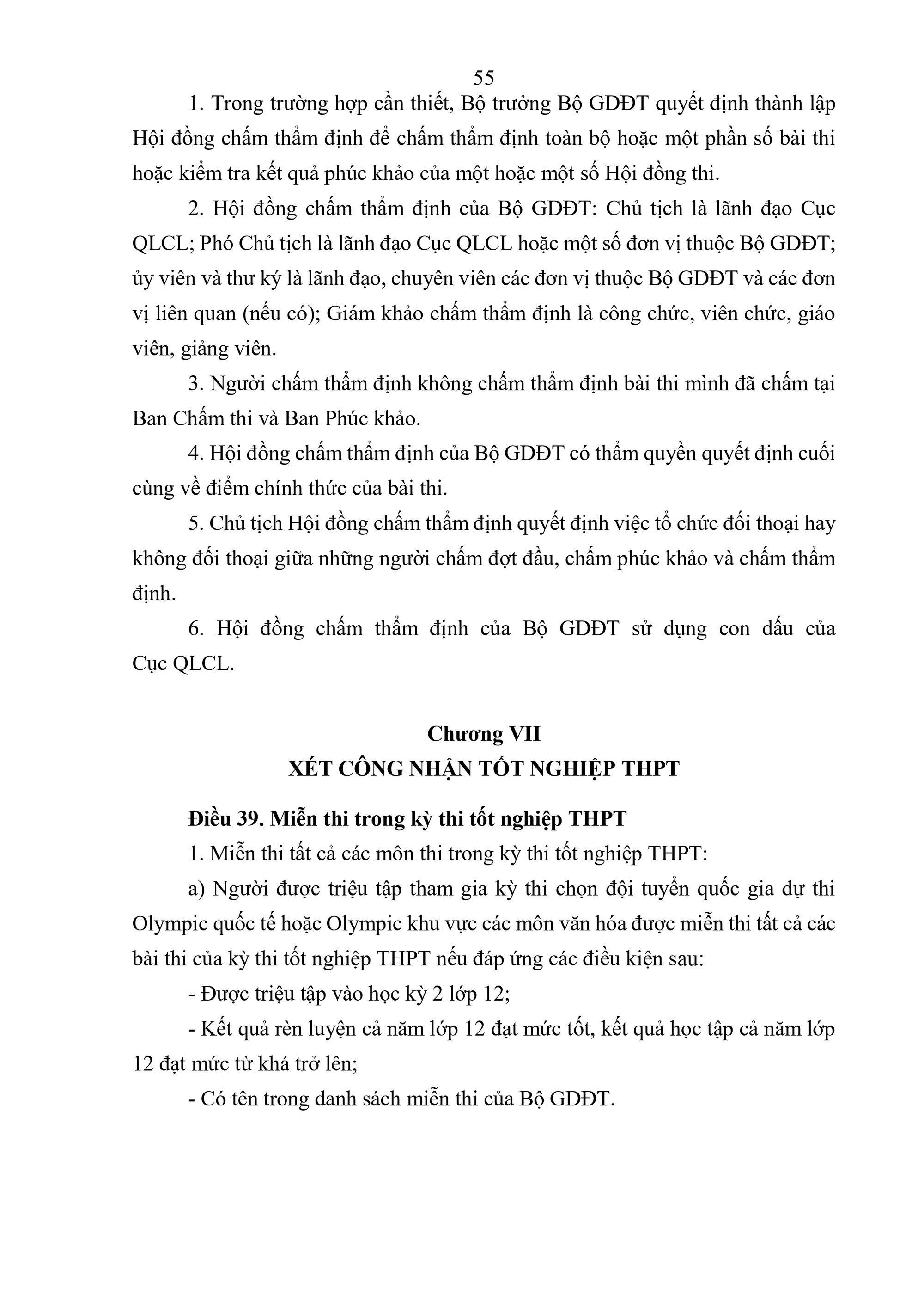 a) Người được triệu tập tham gia kỳ thi chọn đội tuyển quốc gia dự thi Olympic quốc tế hoặc Olympic khu vực các môn văn hóa được miễn thi tất cả các bài thi của kỳ thi tốt nghiệp THPT nếu đáp ứng các điều kiện sau: