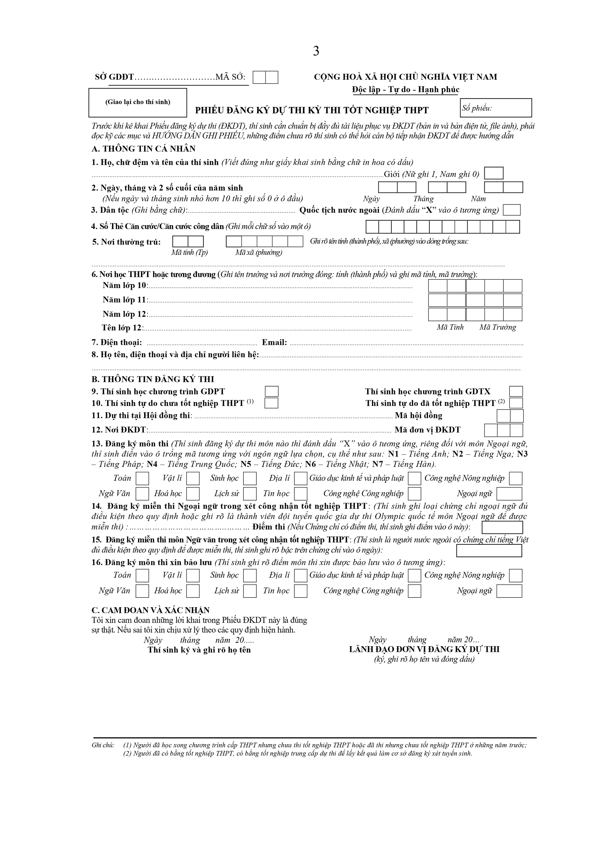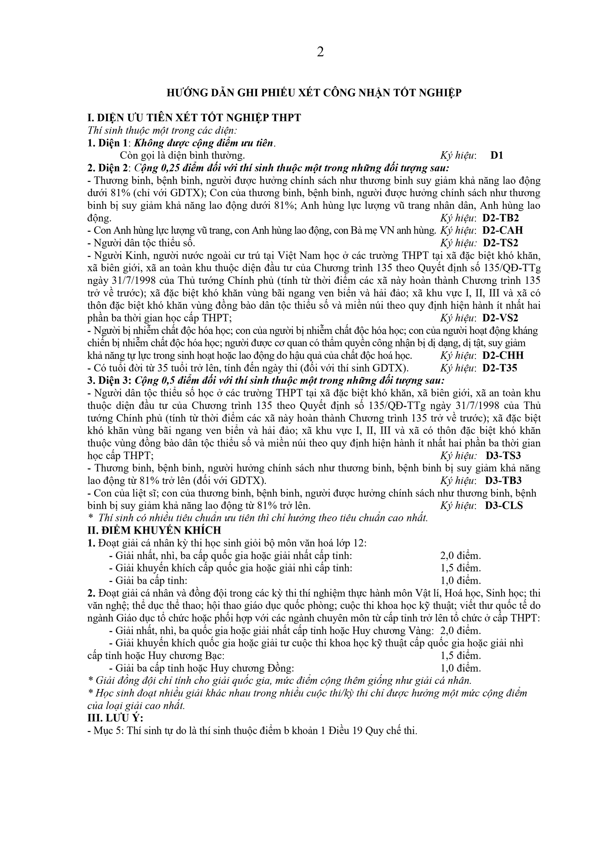 1. Miễn thi tất cả các môn thi trong kỳ thi tốt nghiệp THPT: