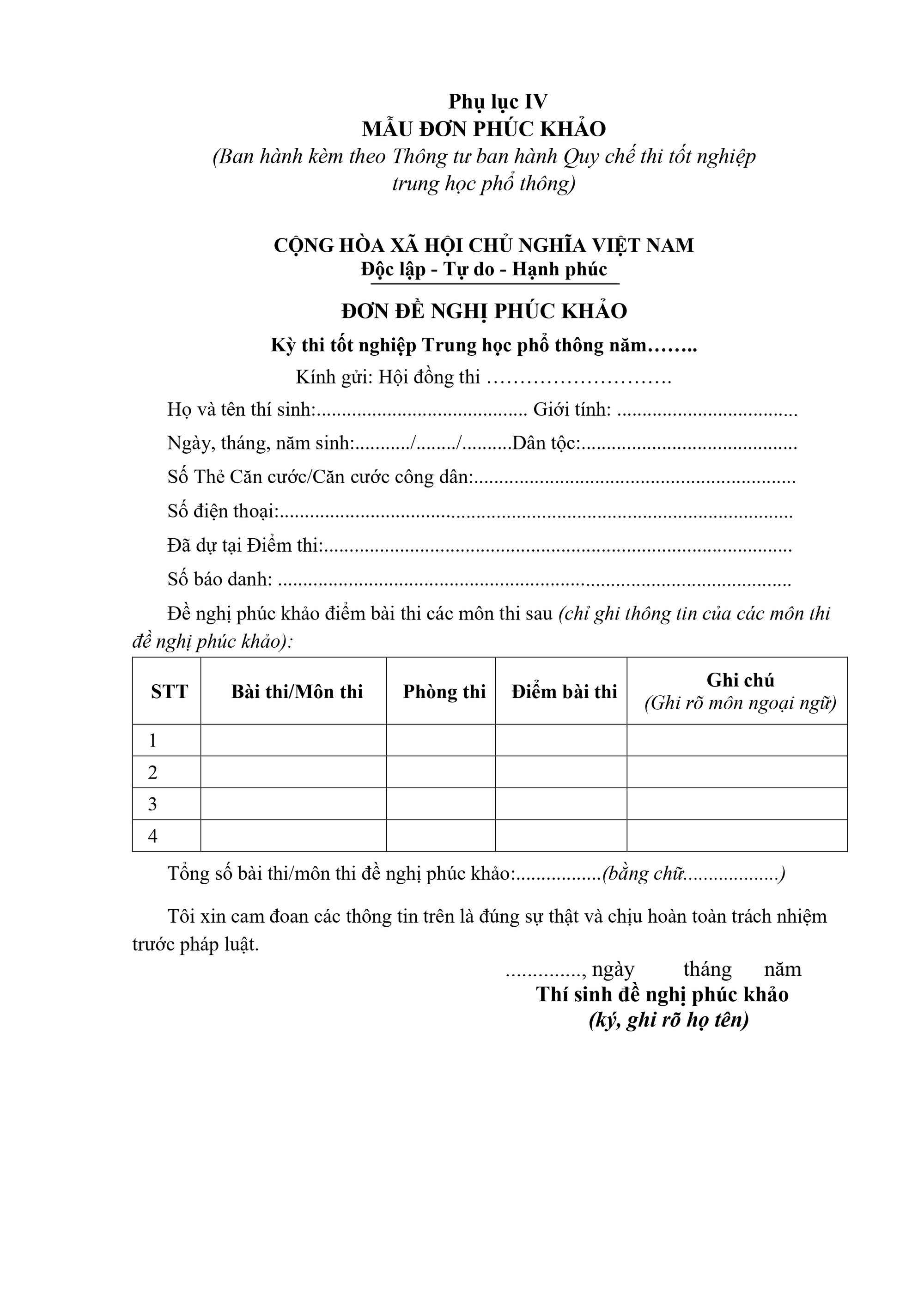 Hình thức thi, thời gian làm môn thi/bài thi: Thực hiện theo quy định về cấu trúc định dạng đề thi kỳ thi tốt nghiệp THPT được Bộ GDĐT ban hành.
