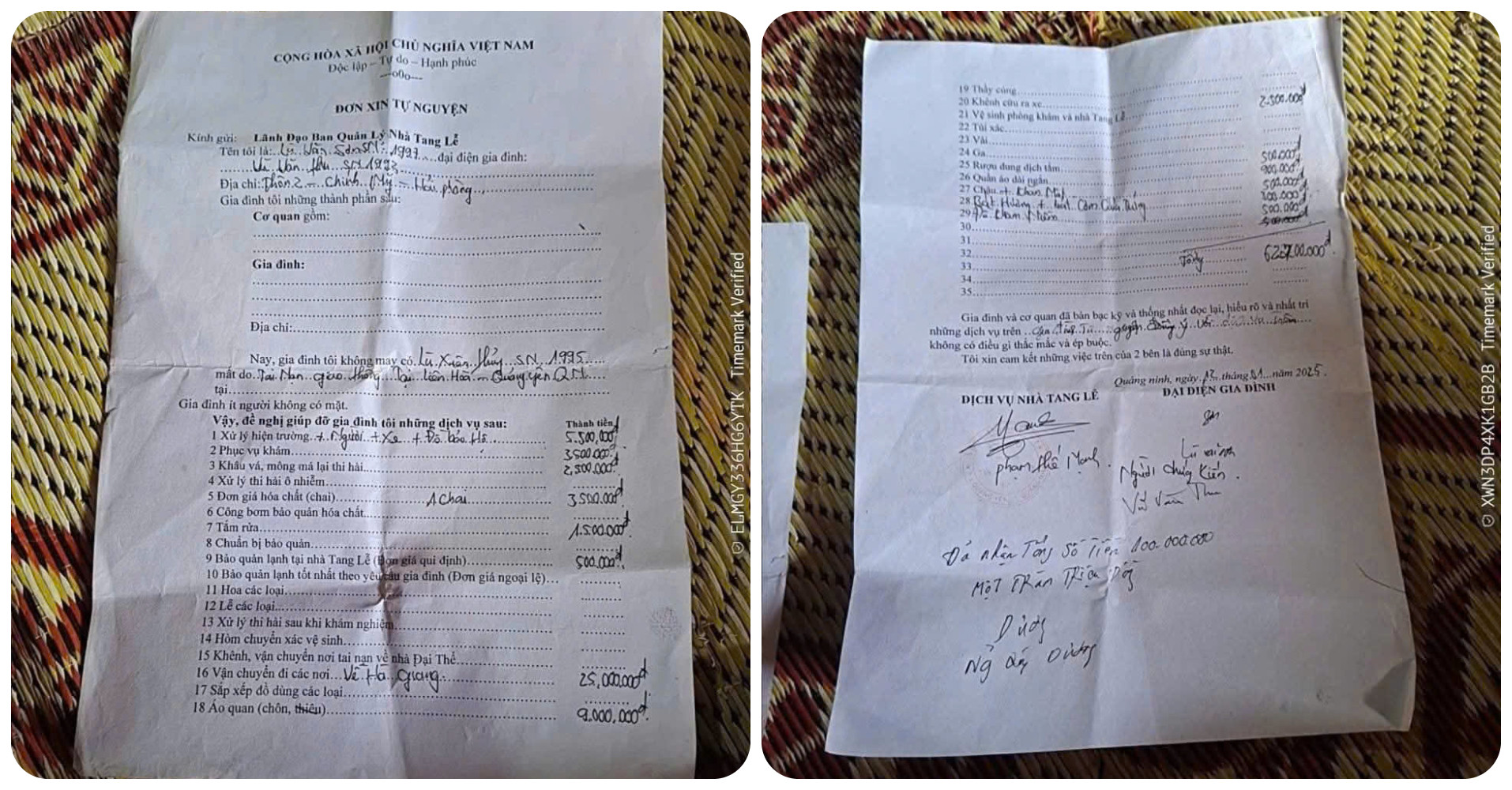 Trước khi thực hiện các dịch vụ liên quan, hợp tác xã đã trao đổi về nội dung, chi phí các loại dịch vụ sẽ thực hiện và được sự thống nhất đồng ý của gia đình nạn nhân (có bản thỏa thuận đã ký giữa 2 bên).