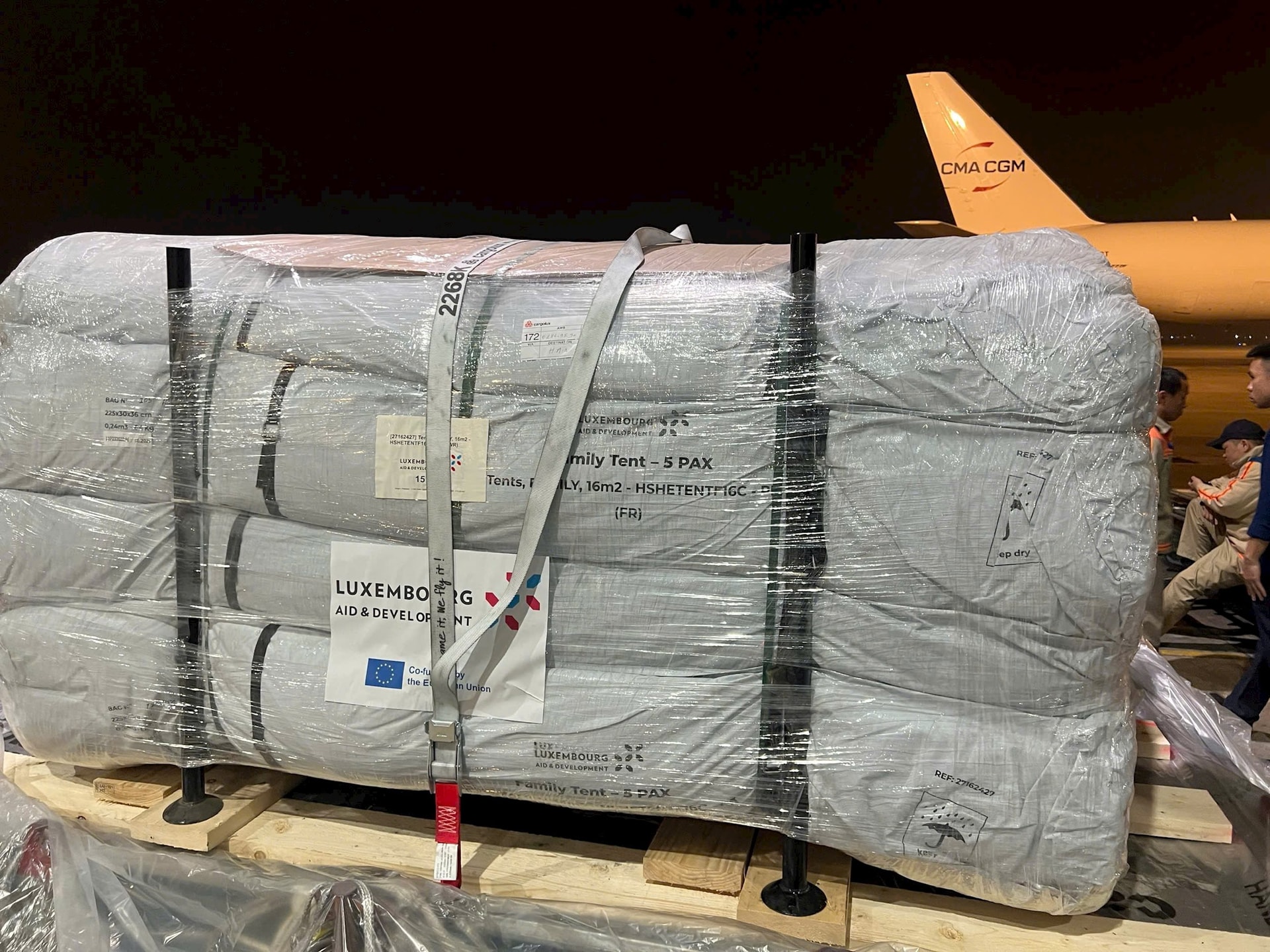 Lô hàng cứu trợ của Liên minh Châu Âu (EU) được vận chuyển từ Luxembourg hạ cánh tại sân bay quốc tế Nội Bài.