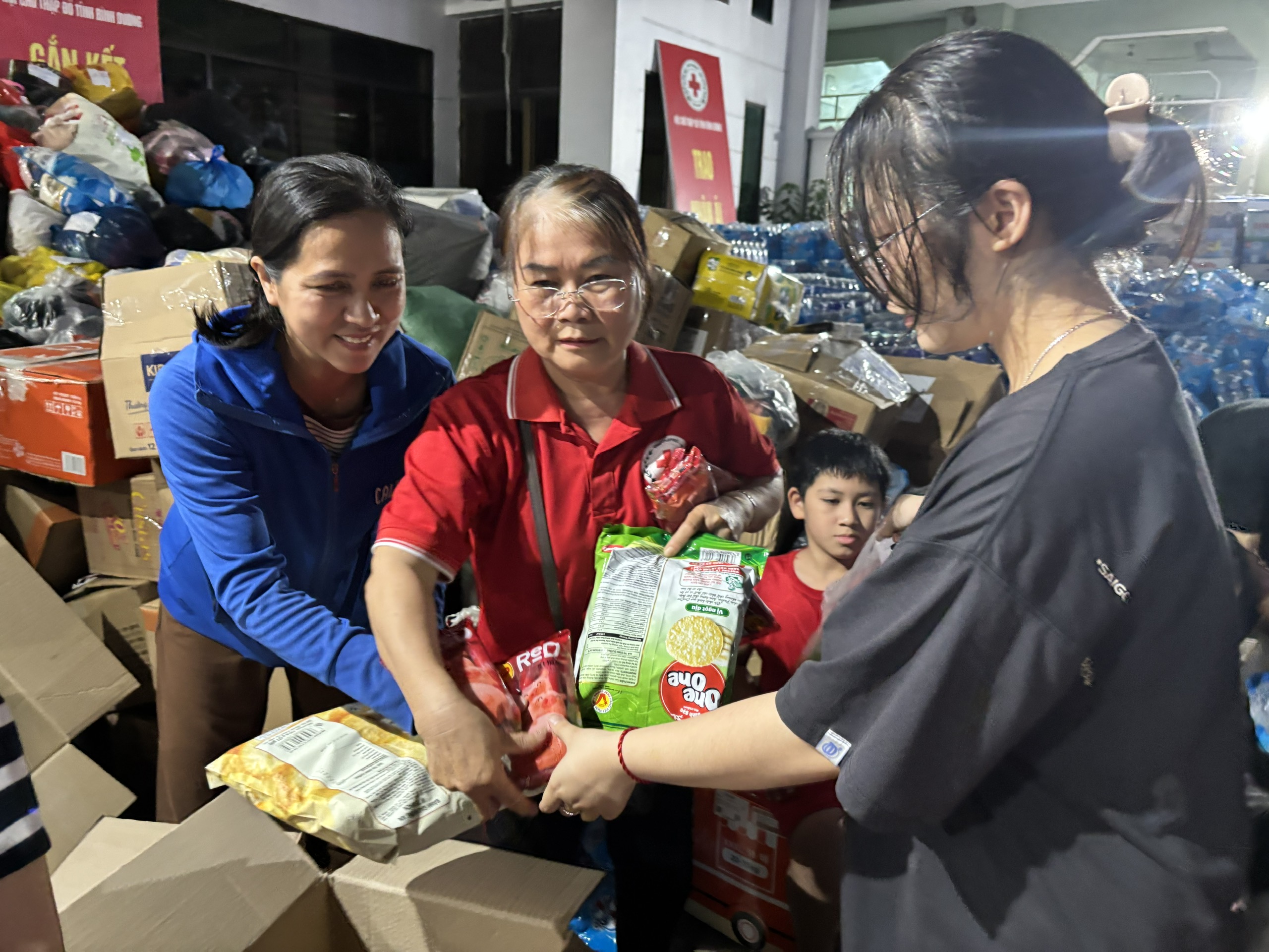 Ông Tống Xuân Giang, Phó Chủ tịch Hội Chữ thập đỏ TPHCM, cho biết chuyến xe đầu tiên sẽ vận chuyển 20 tấn nhu yếu phẩm như gạo, mì, sữa, bánh các loại, xúc xích, cá hộp, nước suối, quần áo, đèn pin, thuốc… đi ngay trong đêm.
