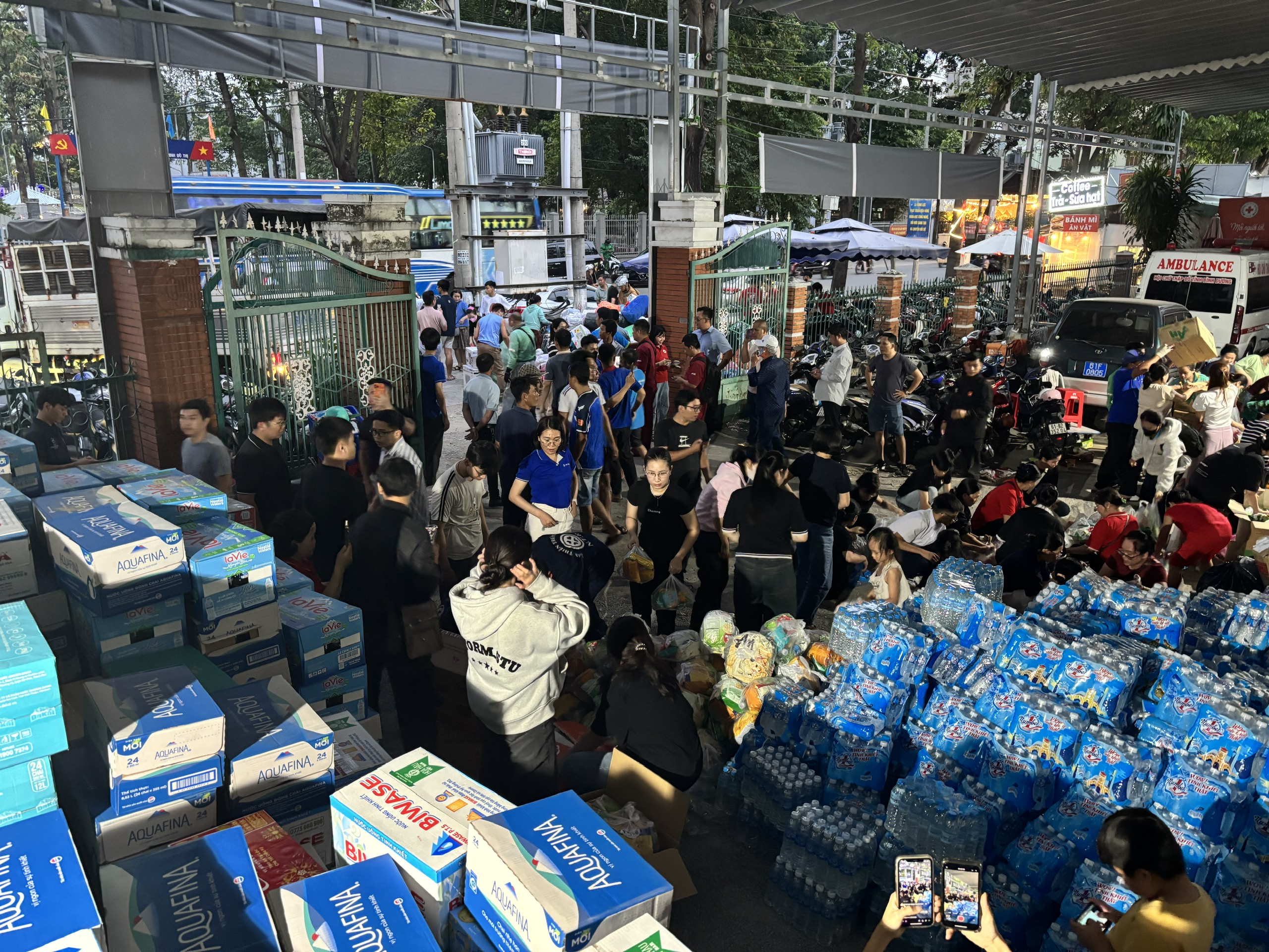 Khoảng 18 giờ chiều 22-11, nhiều tình nguyện viên xếp hàng hóa lên một chiếc xe tải dừng trước trụ sở của Hội Chữ thập đỏ TPHCM cơ sở 2 (phường Phú Lợi, TPHCM).