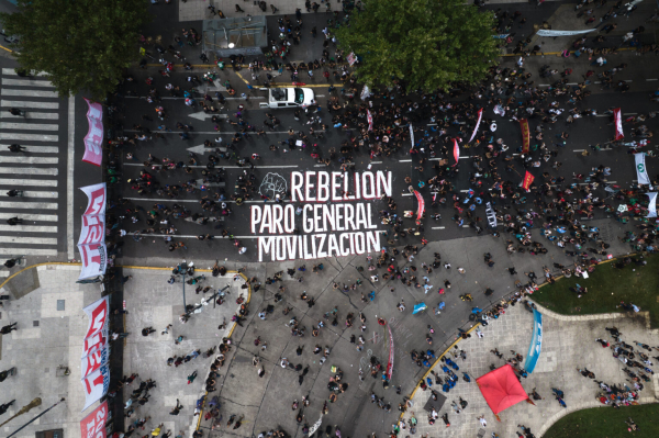 Một cuộc biểu tình phản đối cải cách Luật lao động diễn ra trước Tòa nhà Quốc hội Argentina, hôm 19/2. Ảnh: NACLA