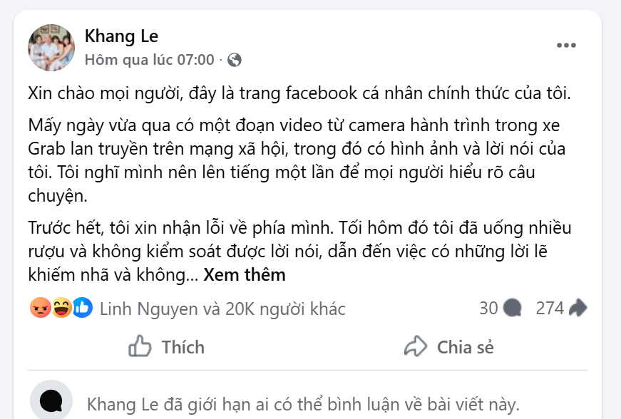 Theo nội dung được lan truyền, clip ghi lại hình ảnh cá nhân trong một tình huống tranh cãi và nhanh chóng được chia sẻ rộng rãi trên các nền tảng mạng xã hội. Sau đó, người trong cuộc đã lên tiếng xin lỗi về hành vi của mình. Tuy nhiên, việc ghi hình và đăng tải đoạn video mà chưa có sự đồng ý của người xuất hiện trong clip tiếp tục trở thành nội dung được nhiều người quan tâm, tranh luận.