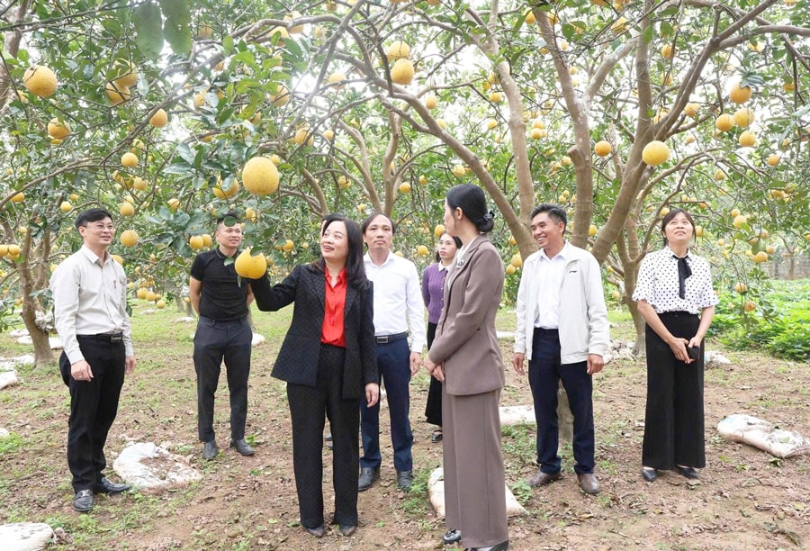 Tại thôn Thành Vật (xã Vân Đình), những vườn bưởi Diễn đang vào vụ thu hoạch. Hương bưởi chín lan tỏa khắp lối đi, xen giữa những hàng cây trĩu quả là hình ảnh nông dân tất bật chăm sóc, thu hái, đón khách tham quan, trải nghiệm. Từ sản xuất nông nghiệp thuần túy, nơi đây đang từng bước chuyển mình thành điểm đến du lịch sinh thái gắn với nông nghiệp đặc trưng vùng Đồng bằng Bắc Bộ.