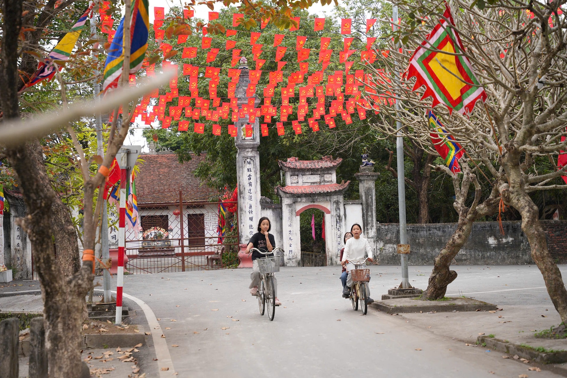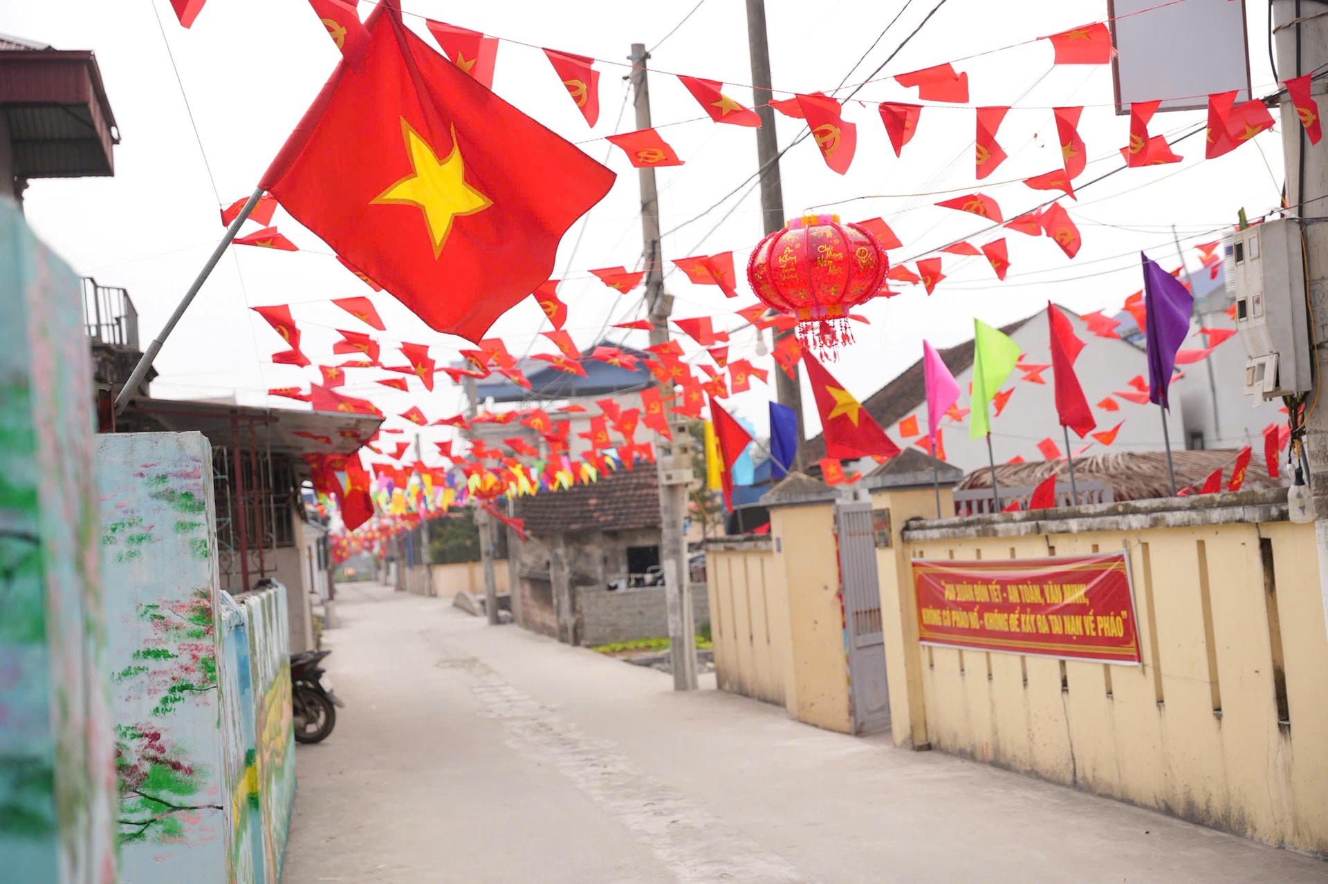 Cờ Tổ quốc rực rỡ ở các ngõ, xóm trên địa bàn xã Vân Đình, tạo không khí phấn khởi trước ngày bầu cử. Ảnh: Thanh Trang