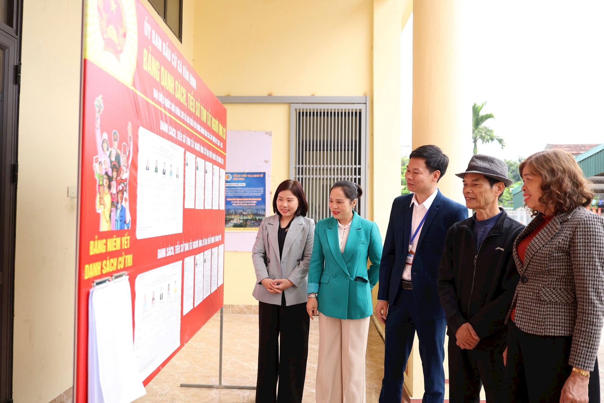 Còn tại thôn Hoàng Xá, đoàn kiểm tra cũng rà soát công tác trang trí khu vực bỏ phiếu, bố trí hòm phiếu và việc cung cấp thông tin liên quan đến bầu cử cho người dân. Trưởng thôn Hoàng Xá Đỗ Đặng Lộc cho biết, toàn thôn hiện có 1.286 cử tri tham gia kỳ bầu cử sắp tới. Các bước chuẩn bị như niêm yết danh sách cử tri, cấp thẻ cử tri và cung cấp thông tin về những người ứng cử đã được thực hiện đầy đủ. Từ nay đến ngày bầu cử, công tác tuyên truyền sẽ tiếp tục được đẩy mạnh thông qua hệ thống loa truyền thanh và các hoạt động tại khu dân cư, nhằm giúp người dân nắm rõ ý nghĩa của kỳ bầu cử cũng như quyền và trách nhiệm của cử tri.