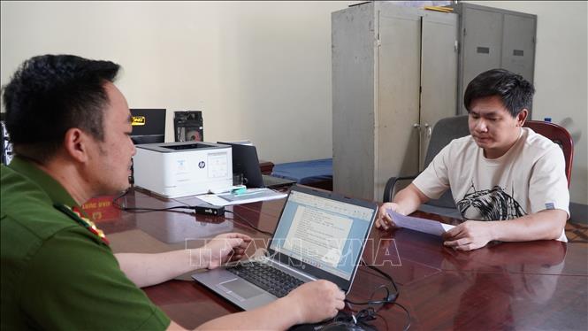 Đối tượng Ngô Đức Lượng tại cơ quan điều tra. Ảnh: TTXVN phát
