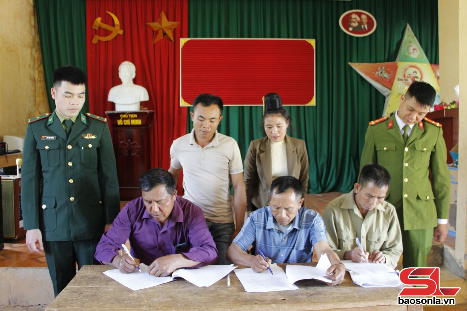 Nhân dân xã Phiêng Khoài ký cam kết chấp hành các quy định của pháp luật về vũ khí, vật liệu nổ, công cụ hỗ trợ và pháo.