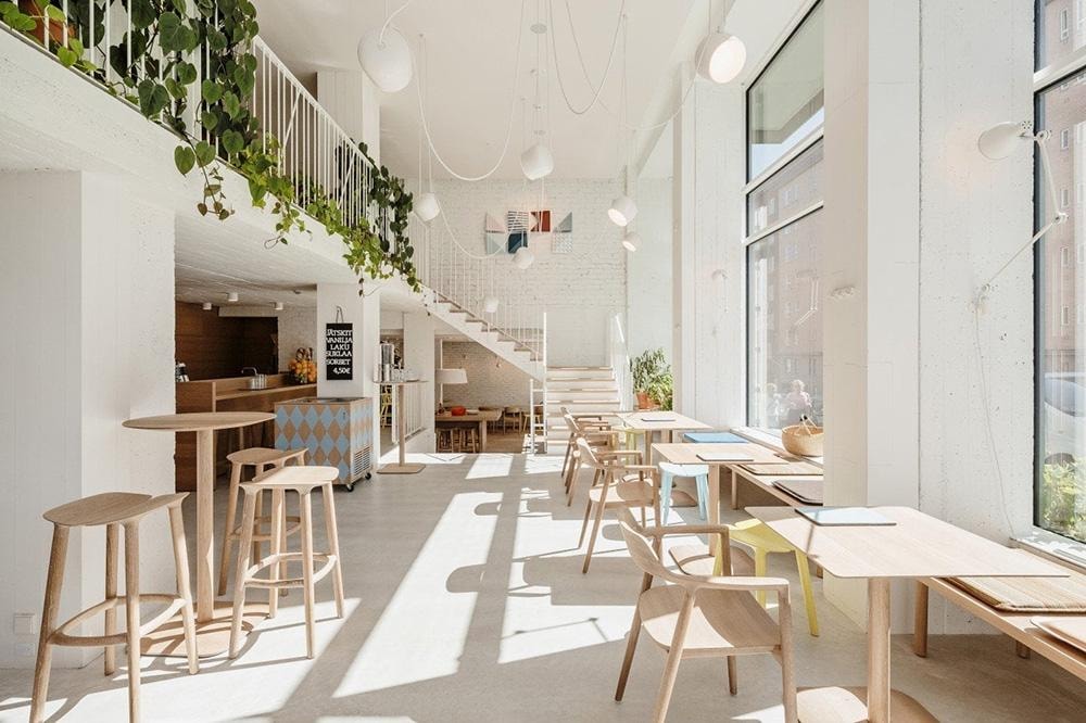 Không gian tối giản tại Five Elephant (Berlin), quán cà phê tiên phong làn sóng “third-wave coffee”, nổi tiếng với cà phê rang xay thủ công và cheesecake kiểu New York trứ danh. Ảnh: Unsplash