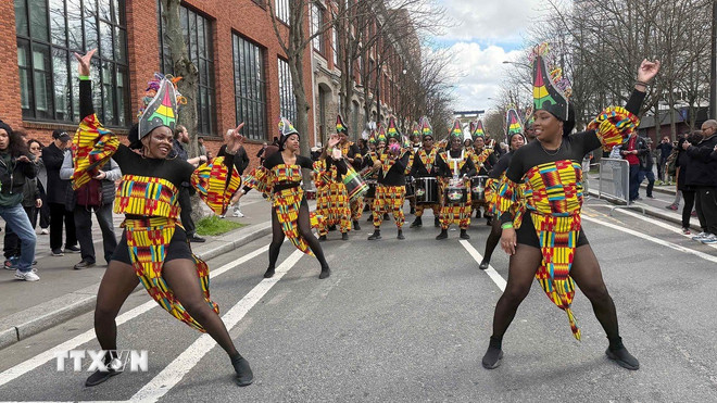 Vũ điệu Caribe rực lửa của cộng đồng người Pháp gốc Phi tại cuộc diễu hành mừng Năm mới Âm lịch 2026. (Ảnh: Hữu Chiến/TTXVN)