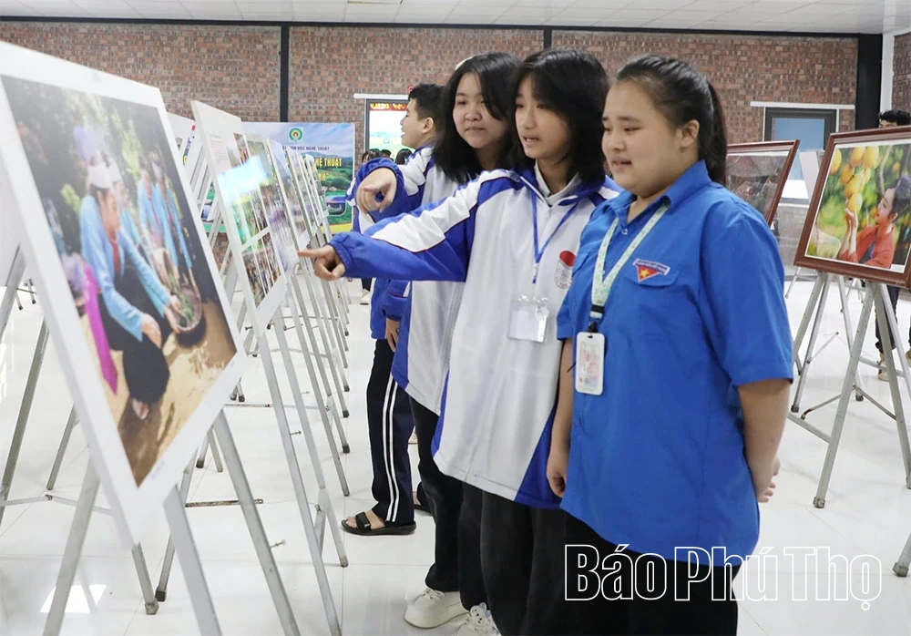 Học sinh Trường THPT Vũ Thê Lang tham quan, thưởng lãm ảnh nghệ thuật với chủ đề “Vẻ đẹp quê hương Phú Thọ qua ống kính nhiếp ảnh”.