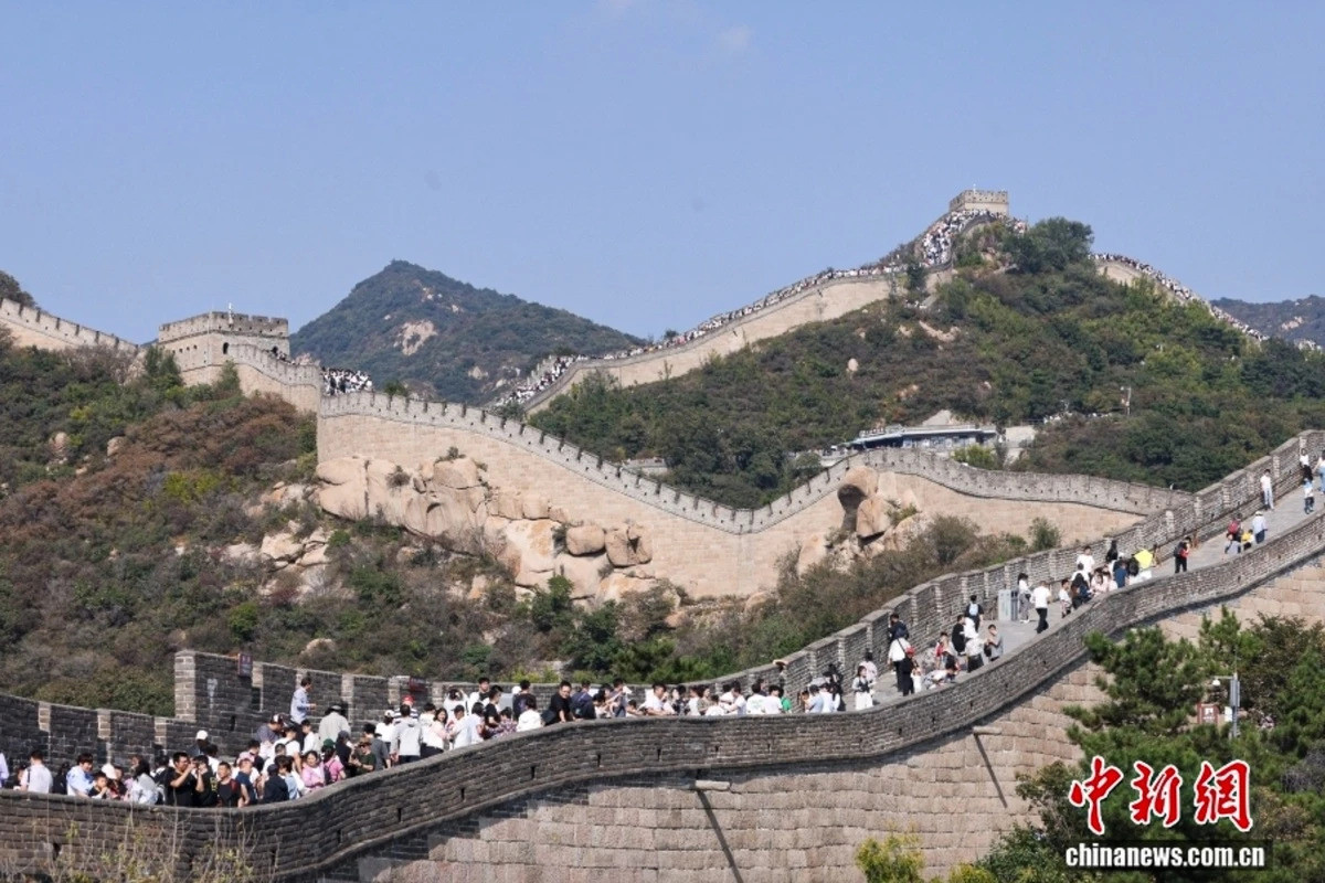 Tại các điểm du lịch nổi tiếng như Vạn Lý Trường Thành ở Bát Đạt Lĩnh cùng công viên Thiên Đàn (Bắc Kinh) đều chật kín du khách từ những ngày đầu.