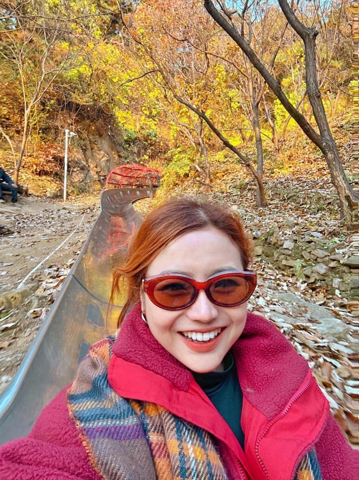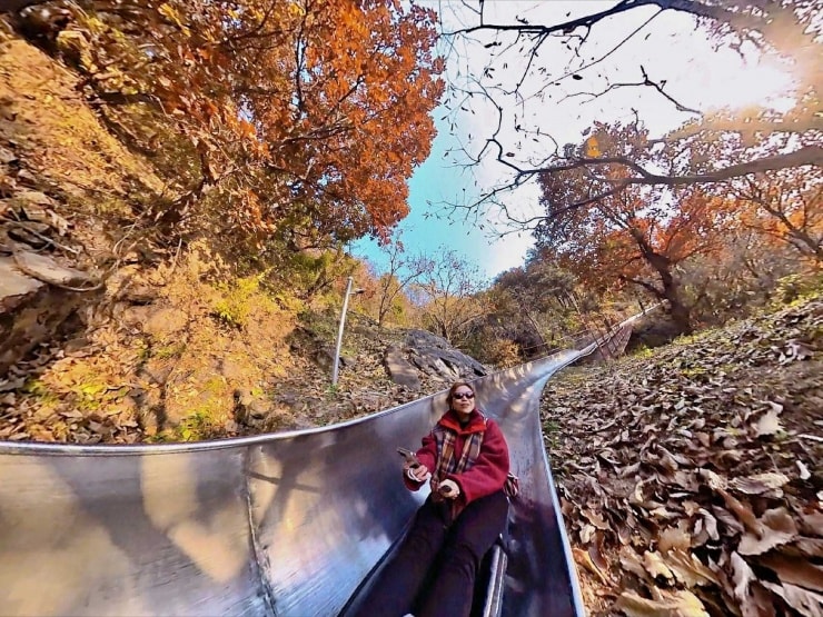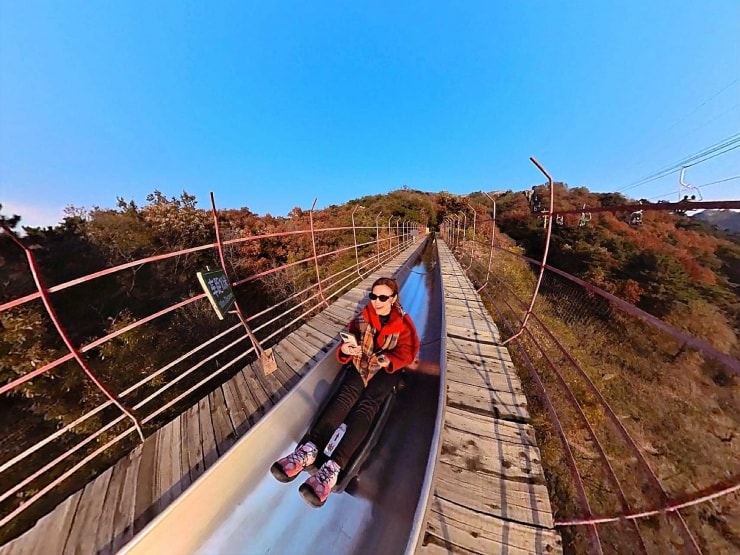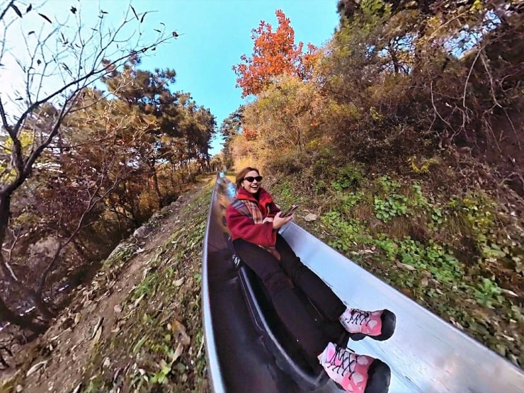 "Vào mùa thu, vừa trượt máng vừa ngắm khung cảnh rừng núi tràn ngập lá vàng, lá đỏ, mình cảm thấy rất phấn khích, như đang bay. Dù trời lạnh, cóng cả hai tay nhưng mình hoàn toàn thích thú vì được chiêm ngưỡng cảnh đẹp như tranh", chị Điệp chia sẻ.