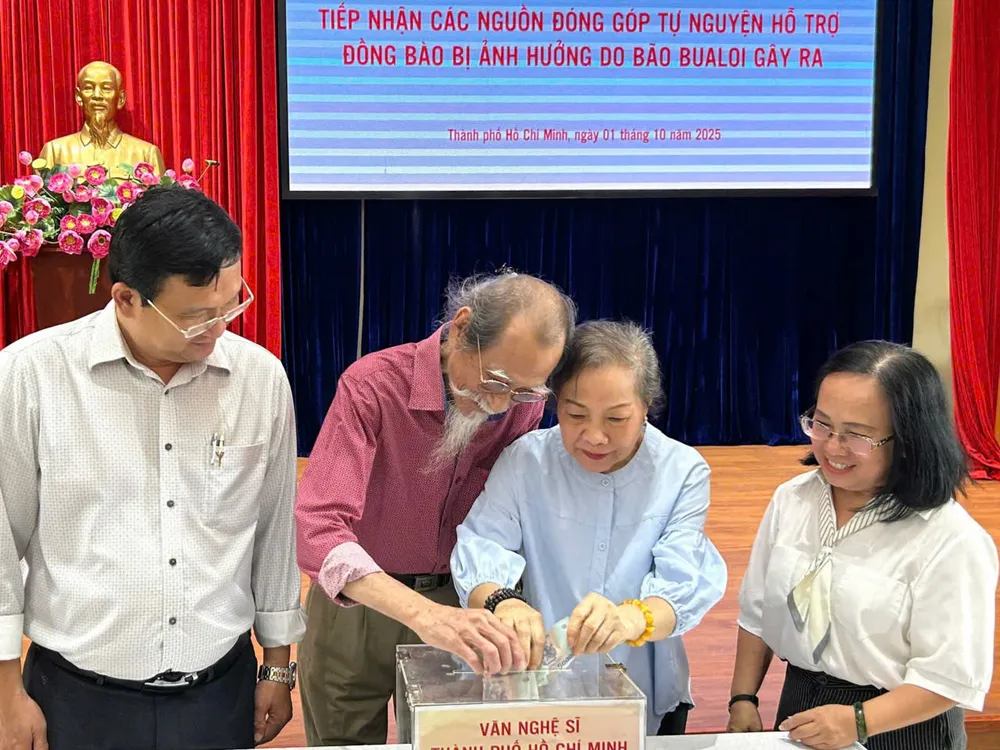Theo đó, Nhà giáo Ưu Tú - NSƯT Mạnh Dung, NSƯT Thanh Dậu, NSND Trịnh Kim Chi, NSND Mỹ Uyên, NSƯT Tuyết Thu, NSƯT Lê Tứ, diễn viên Kim Tuyến, nhạc sĩ Nguyễn Văn Chung cùng đông đảo văn nghệ sĩ đã đến Ủy ban MTTQ Việt Nam TP.HCM để tham gia quyên góp, chia sẻ khó khăn cùng bà con miền Trung bị ảnh hưởng bởi bão số 10.