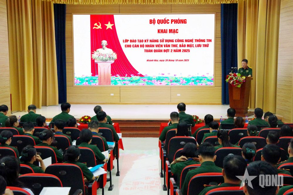 Nội dung chương trình đào tạo được xây dựng kết hợp giữa lý thuyết và thực hành, gồm: Kỹ năng sử dụng công nghệ thông tin cơ bản; xử lý văn bản, bảng tính; kỹ năng bảo mật, an toàn thông tin; hướng dẫn gửi, nhận và xử lý văn bản điện tử có ký số đến cấp “Tối mật” trên mạng truyền số liệu quân sự; giới thiệu, thực hành ứng dụng trí tuệ nhân tạo (AI) trong công tác văn phòng, văn thư, lưu trữ.