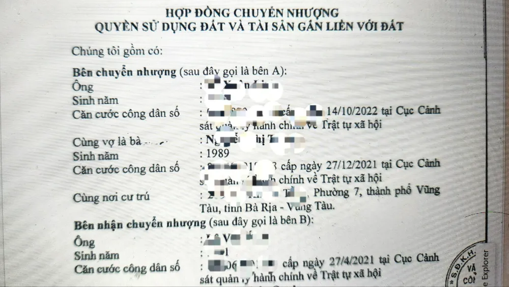 Hai bên thống nhất giá bán nhà là 5,3 tỉ đồng, ông A chuyển trước 200 triệu đồng. Ngày 21-1-2025, vợ chồng T đi cùng vợ chồng ông A đến một Văn phòng công chứng tại khu trung tâm đô thị Chí Linh (phường 10, TP Vũng Tàu cũ) để ký hợp đồng chuyển nhượng.