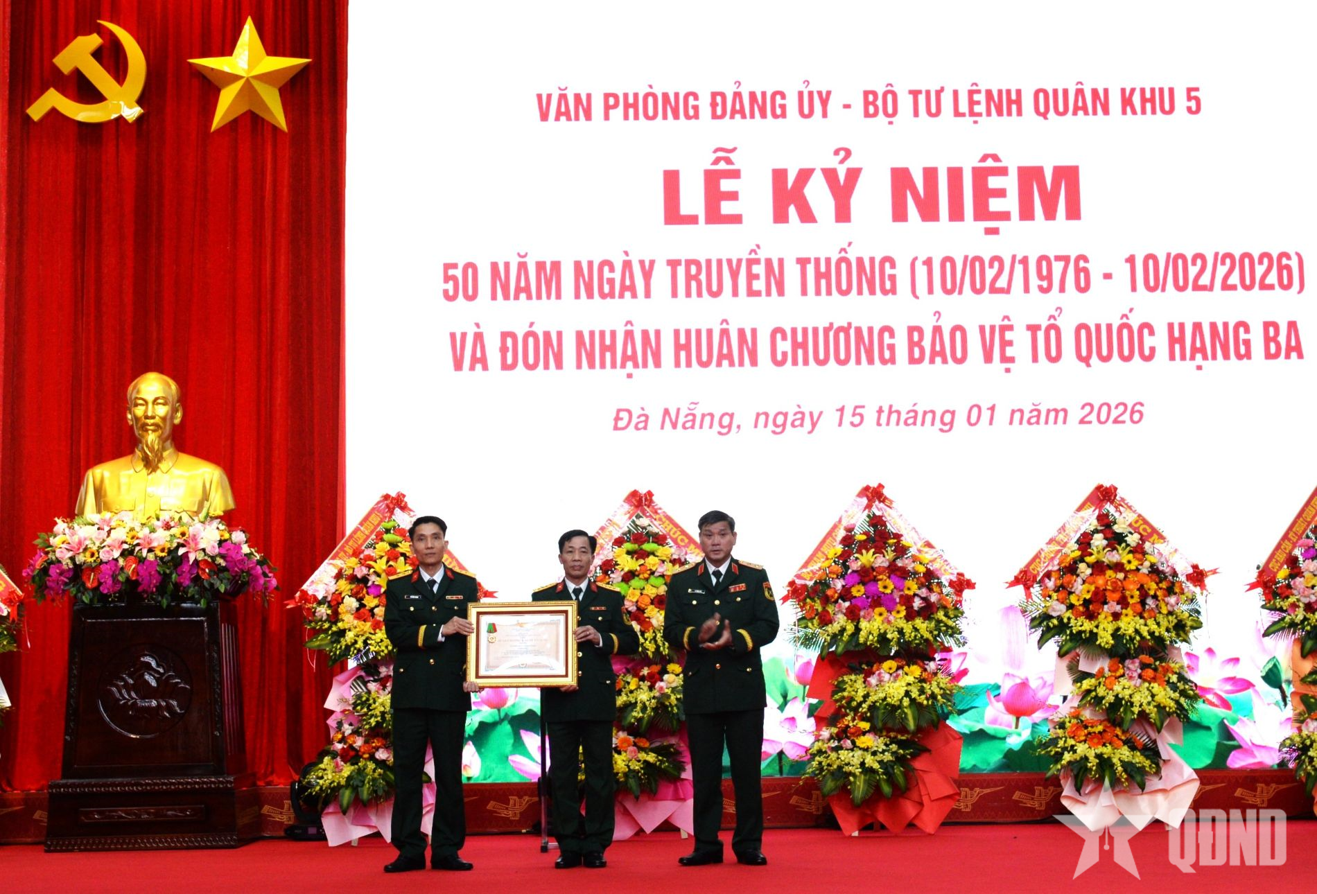 Thừa ủy quyền của Chủ tịch nước, Trung tướng Lê Ngọc Hải, Tư lệnh Quân khu 5 trao Huân chương Bảo vệ Tổ quốc hạng Ba tặng Văn phòng Đảng ủy - Bộ tư lệnh Quân khu 5.