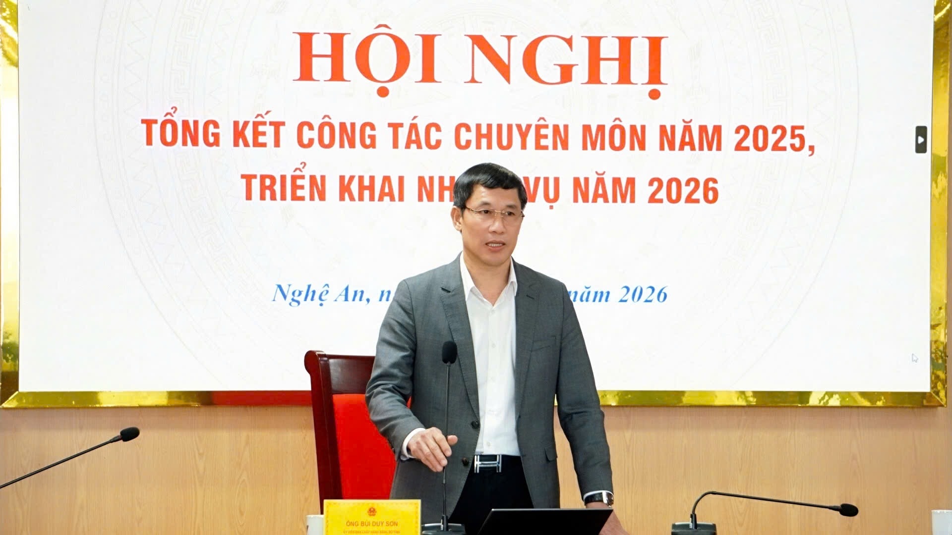 Phát biểu khai mạc hội nghị, Chánh Văn phòng Đoàn ĐBQH và HĐND tỉnh Bùi Duy Sơn nhấn mạnh: Hội nghị là dịp quan trọng để đánh giá toàn diện kết quả công tác chuyên môn năm 2025; thẳng thắn chỉ ra những tồn tại, hạn chế, nguyên nhân; đồng thời thống nhất phương hướng, nhiệm vụ và giải pháp triển khai trong năm 2026.