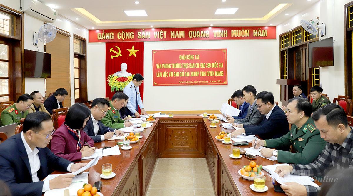 Đoàn công tác Ban Chỉ đạo 389 quốc gia đề nghị, thời gian tới, Ban Chỉ đạo 389 tỉnh cần tăng cường phối hợp với các lực lượng chức năng, làm tốt công tác nắm tình hình, trao đổi thông tin, tuyên truyền việc chấp hành pháp luật trong hoạt động kinh doanh thương mại đến các tổ chức và cá nhân trên địa bàn tỉnh. Đẩy mạnh công tác thanh tra, kiểm tra kịp thời phát hiện xử lý nghiêm đối với các hành vi vi phạm, nhất là trong tháng cuối năm 2025, trước, trong và sau Tết Nguyên đán Bính Ngọ 2026.