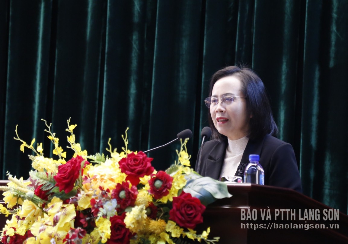 Đồng chí Đoàn Thị Hậu, Phó Bí thư Thường trực Tỉnh ủy, Chủ tịch HĐND tỉnh, Bí thư Đảng ủy Các cơ quan Đảng tỉnh phát biểu chỉ đạo tại hội nghị