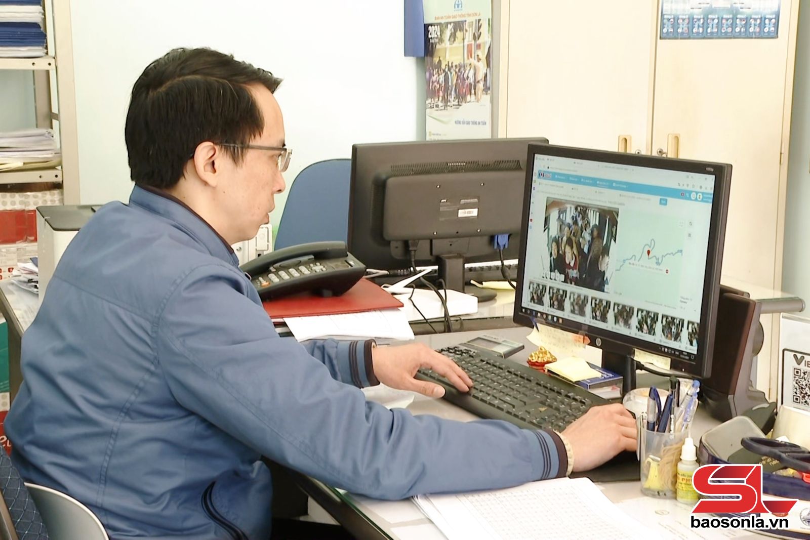 Cán bộ Công ty CP Xe khách số 1 Sơn La theo dõi thiết bị giám sát hành trình của các tuyến buýt.