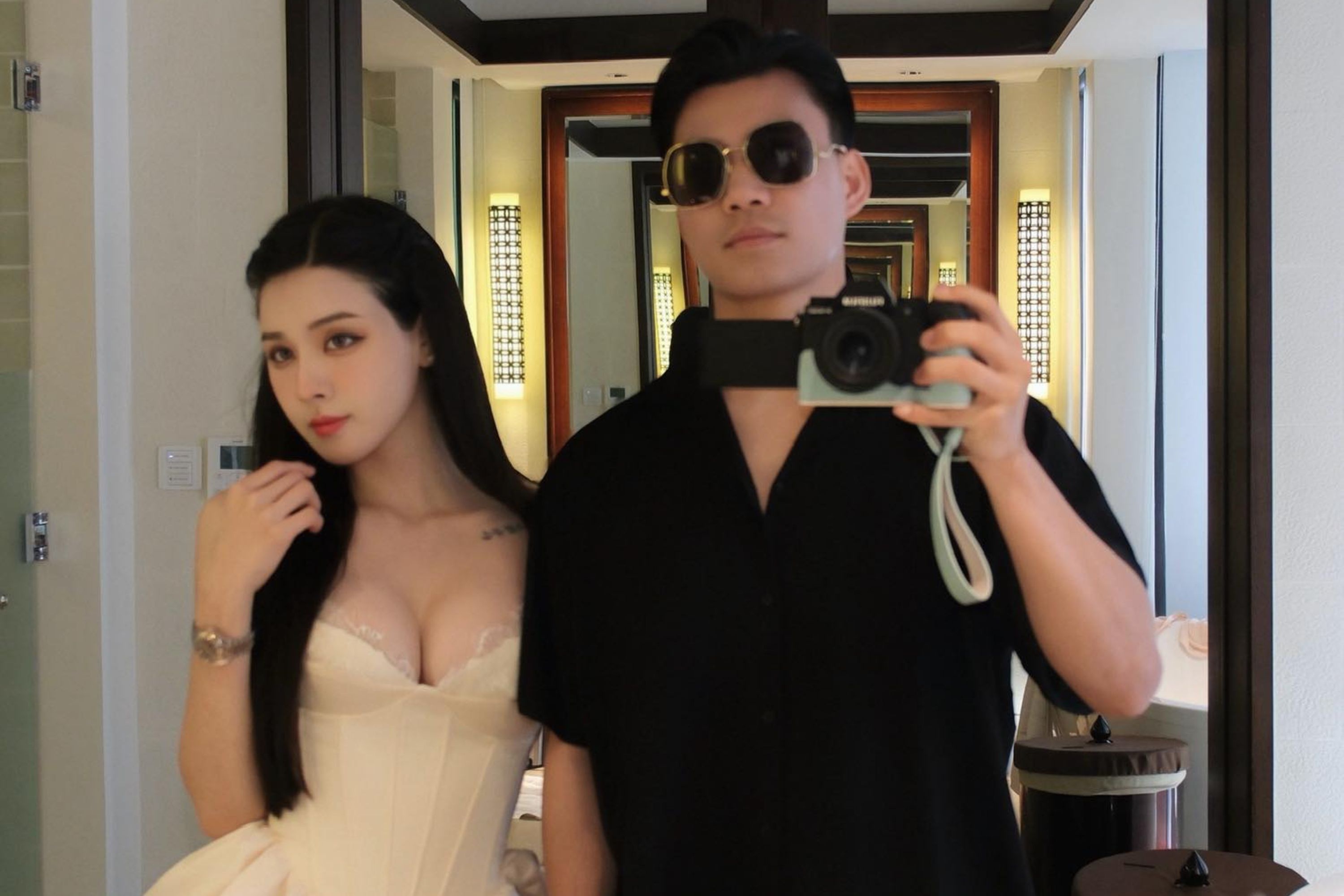 Văn Thanh "cool ngầu" khi chụp ảnh cùng bạn gái Trần Bích Hạnh ngày Valentine. Ảnh: Vũ Văn Thanh/Facebook.