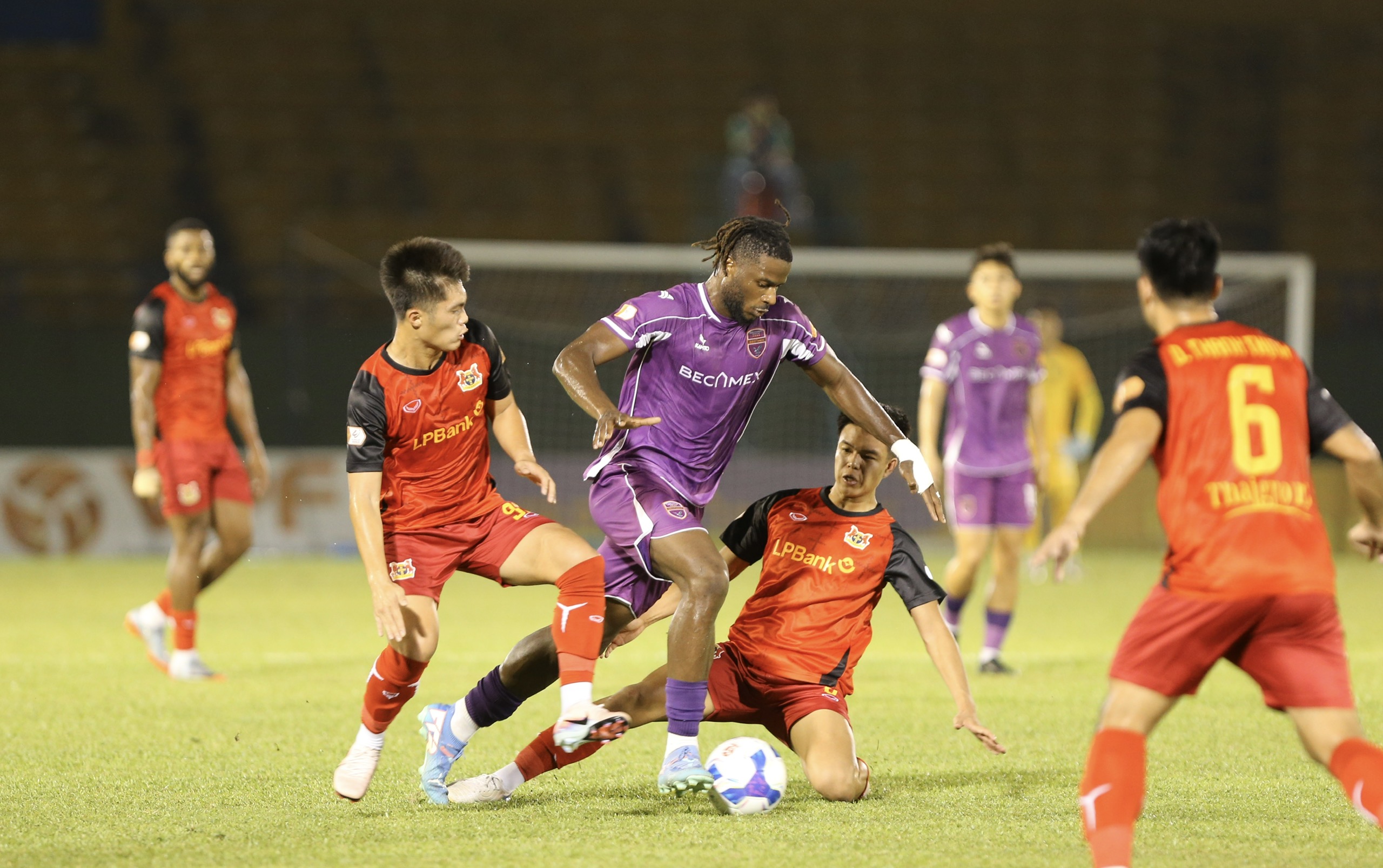 Becamex TPHCM có trận đấu đầy nỗ lực trước Ninh Bình có thực lực mạnh hơn. Ảnh: DŨNG PHƯƠNG