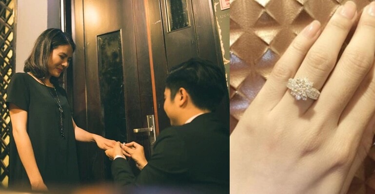 Nữ diễn viên được ông xã cầu hôn bằng nhẫn kim cương.