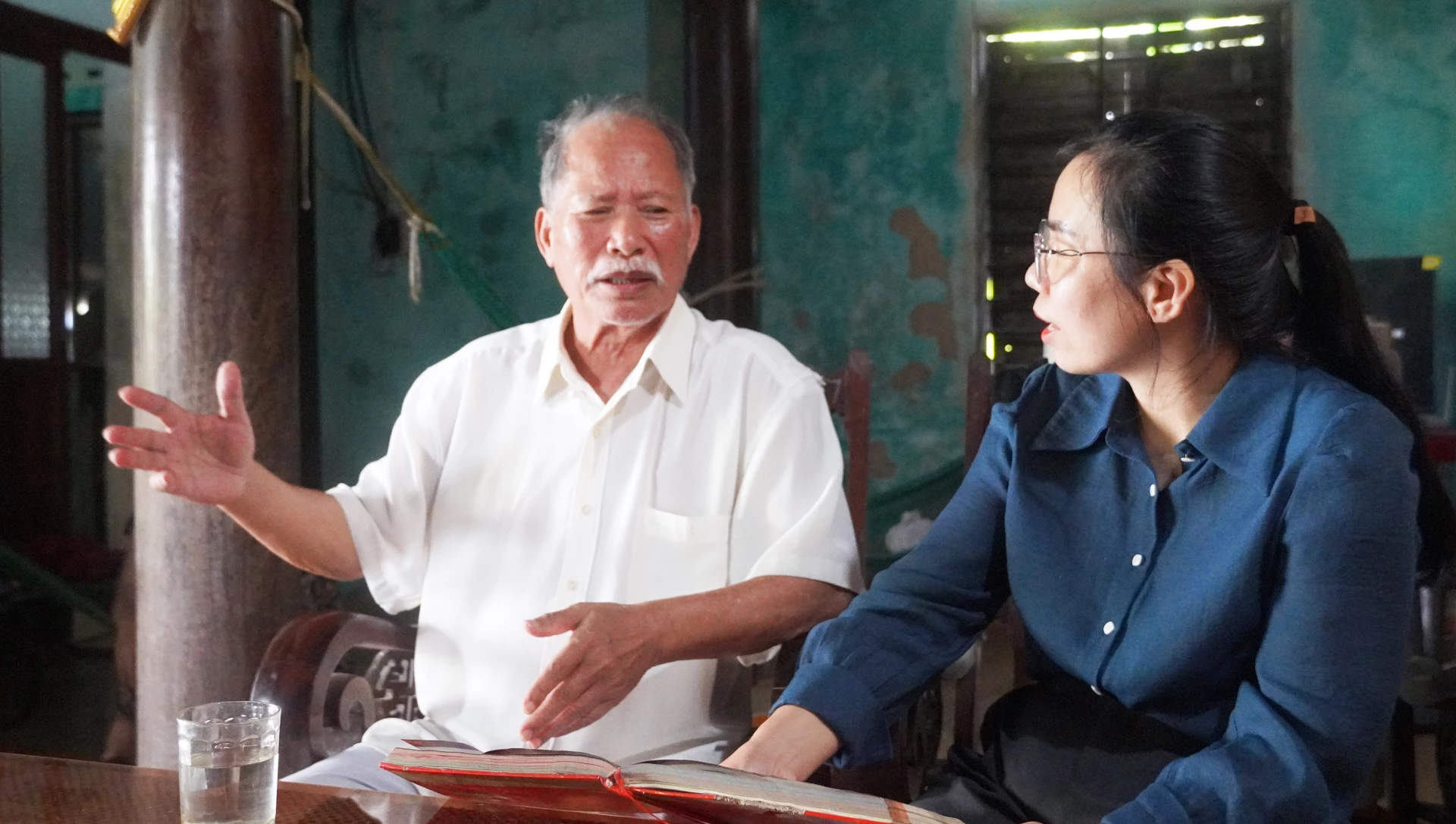 Anh hùng Lực lượng vũ trang nhân dân Võ Xuân Khuể ôn lại ký ức hào hùng - Ảnh: N.M