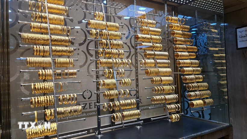 Trang sức vàng được bày bán tại tiệm kim hoàn ở Istanbul, Thổ Nhĩ Kỳ. (Ảnh: THX/TTXVN)