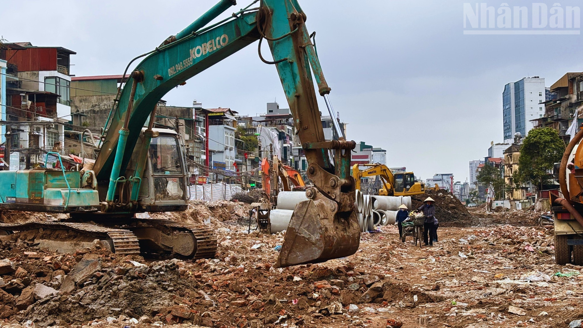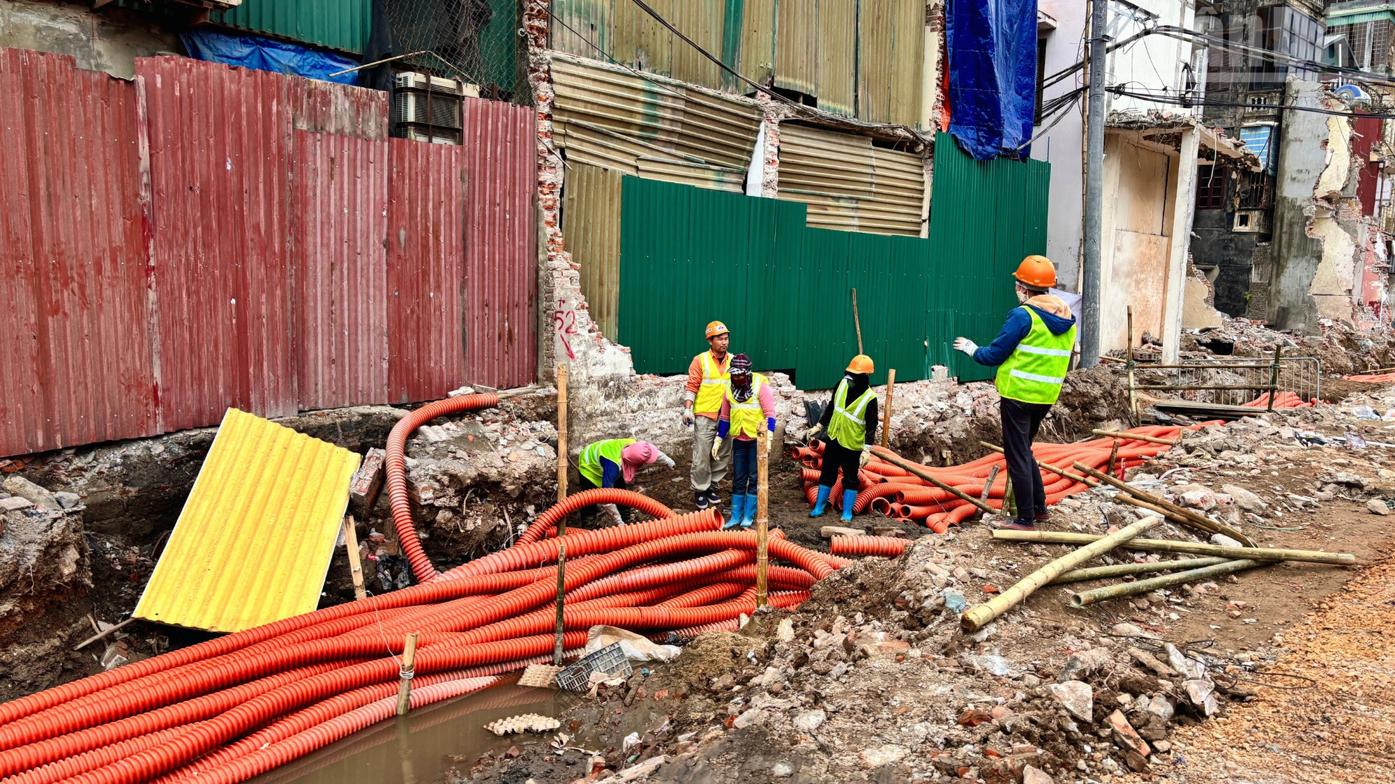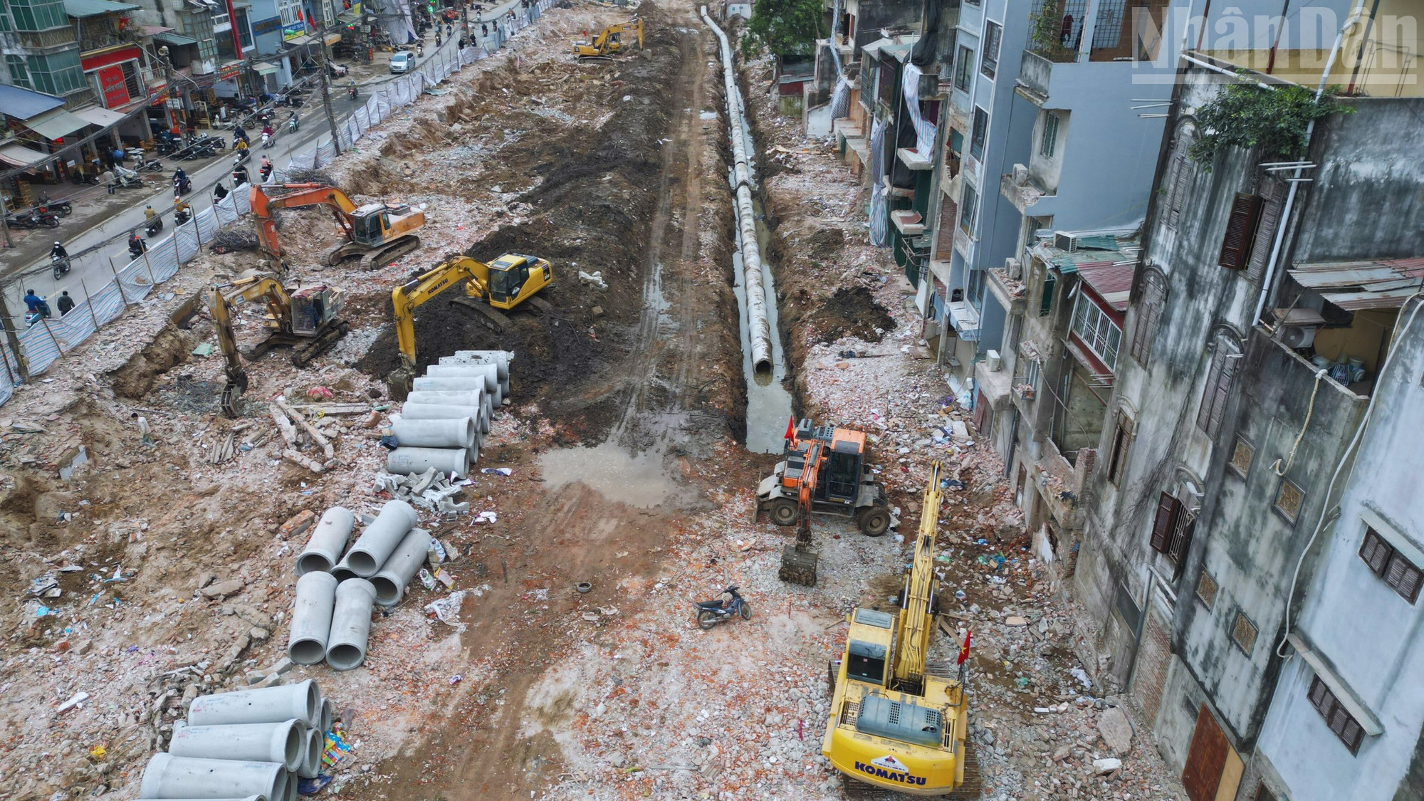 Hệ thống cáp ngầm, ống cống dọc tuyến đường cũng đang được thi công lắp đặt đúng theo tiến độ được giao.