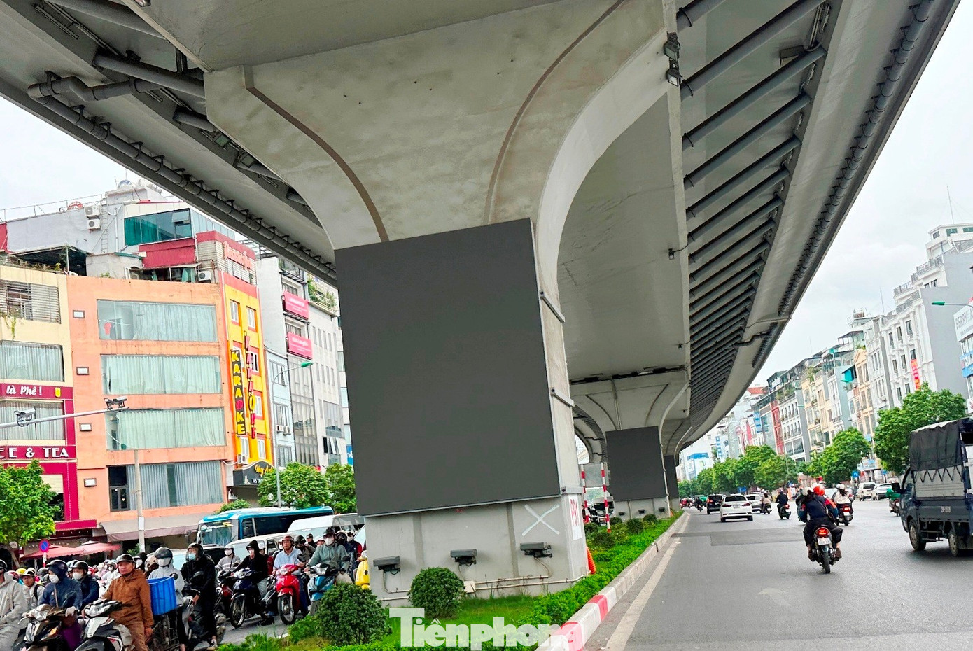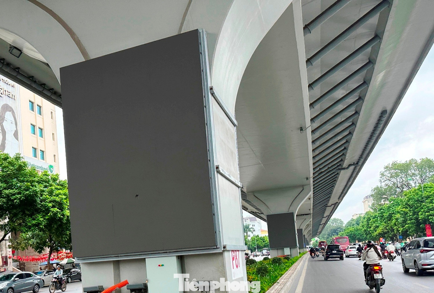 Những ngày qua, người tham gia giao thông trên đường Vành đai 2, đoạn từ Ngã Tư Sở đến cầu Vĩnh Tuy, bất ngờ thấy các trụ cầu cạn tại đây được treo dày đặc biển quảng cáo LED.