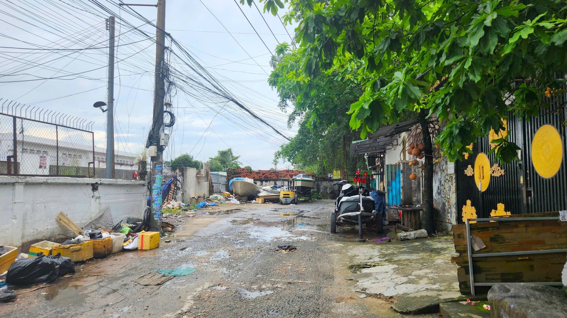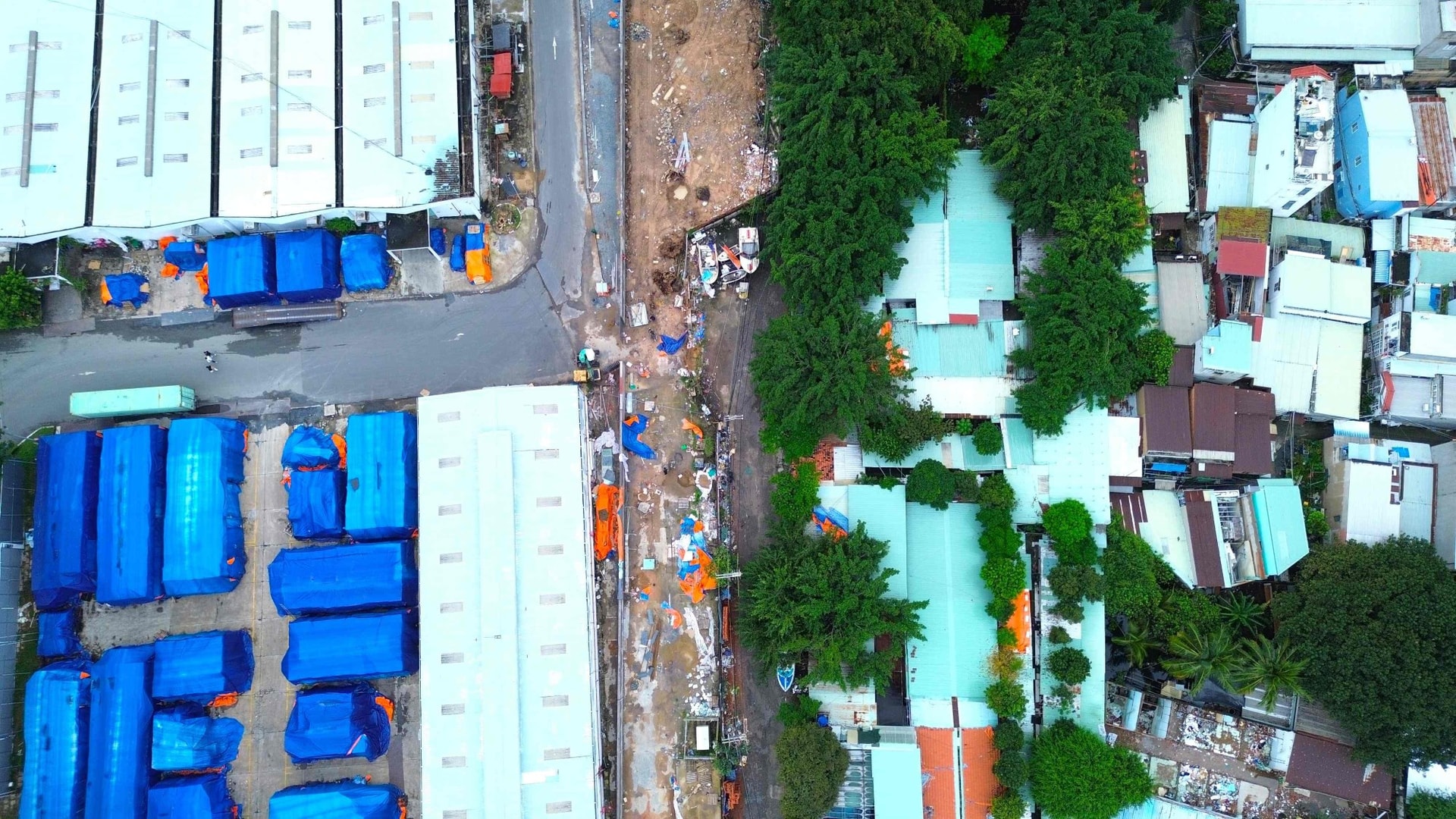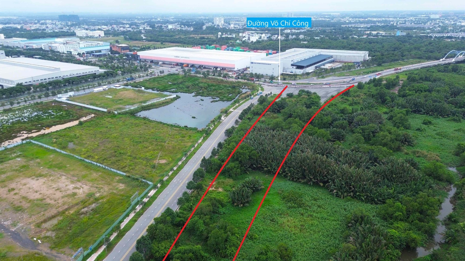 Một khu vực tuyến Vành đai 2 từ cầu Phú Hữu - đường Võ Nguyên Giáp sẽ đi qua, có thể thấy nhiều căn nhà trên khu vực đã được di dời, đang đợi để giải phóng mặt bằng sạch.
