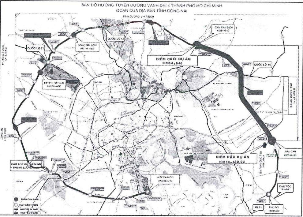 Vành đai 4 TP HCM đoạn qua tỉnh Đồng Nai. (Ảnh chụp từ văn bản ĐTM dự án)
