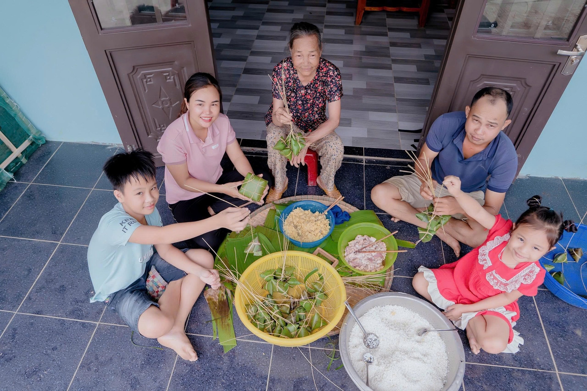 Gia đình chị Nguyễn Thị Hằng tham gia sản phẩm nhà nông là các loại bánh tét, bánh chưng, bánh ú nếp quê. Ảnh: LÊ DIỄM