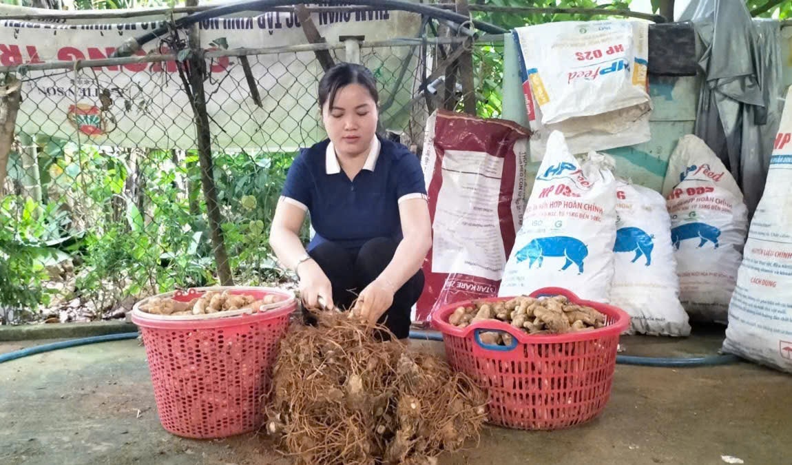 Chị Trần Thị Minh Thuấn chuẩn bị củ ngãi, củ sam để làm tinh bột và bánh từ tinh bột ngãi, sam. Ảnh: LÊ DIỄM