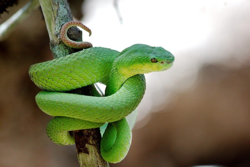Rắn lục đuôi đỏ là tên gọi chung của một nhóm các loài rắn thuộc chi Trimeresurus, họ rắn lục (Viperidae). Ảnh: flickr.