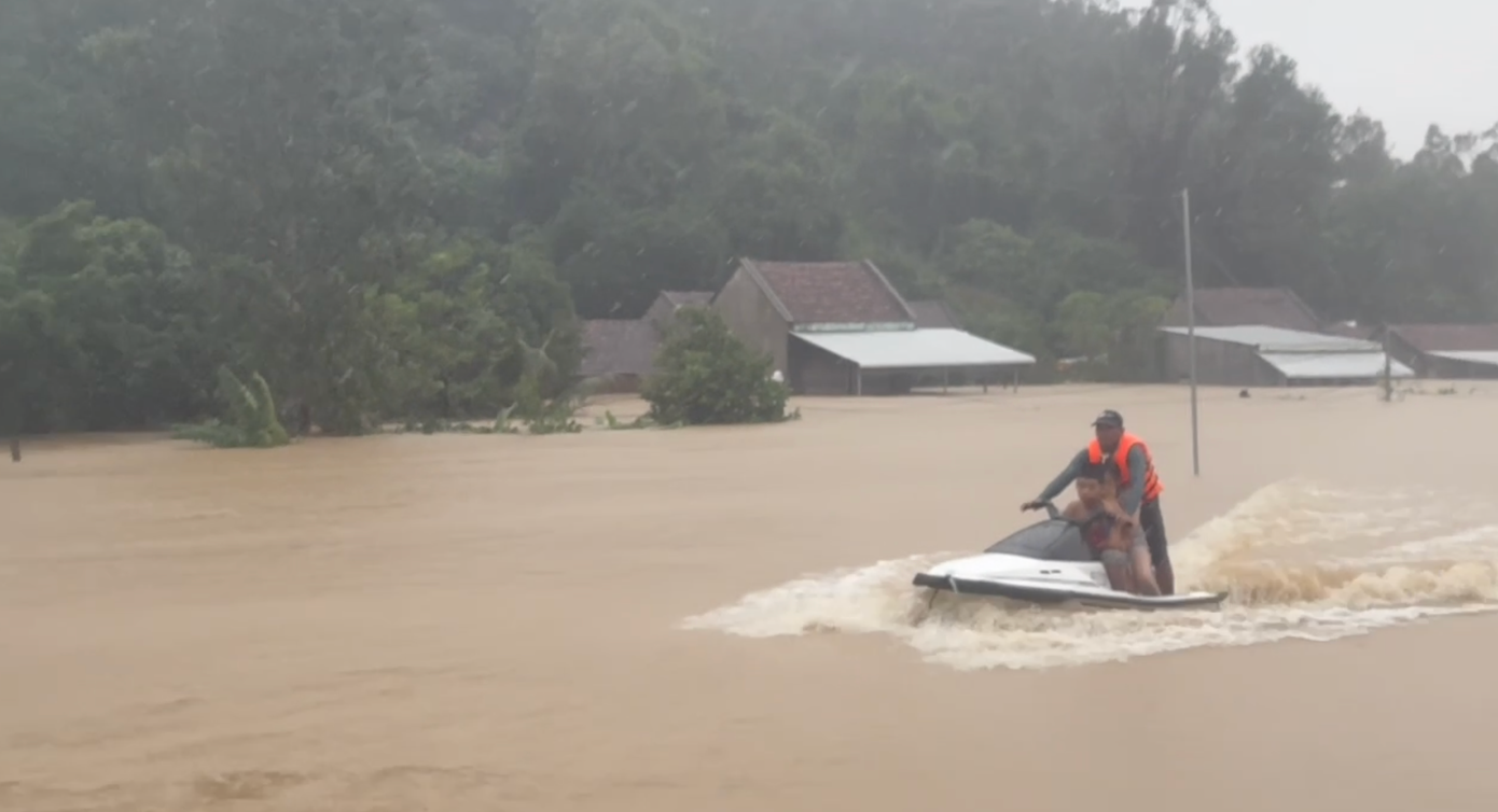Chiếc jetski của nhóm anh Hà đưa người dân Hòa Xuân ra khỏi vùng lũ
