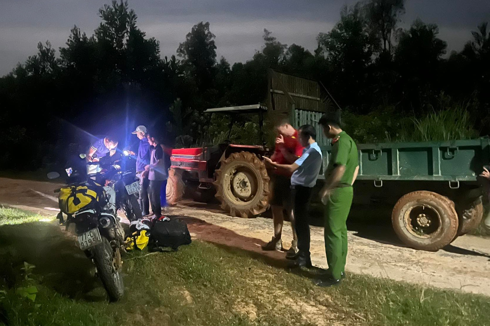 Đúng lúc đó, một nhóm người dân đi rừng phát hiện sự việc và lập tức báo Công an xã Cồn Tiên. Nhận được tin, lực lượng công an cùng người dân mang theo đèn pin, dây thừng và xe chuyên dụng, lội bùn băng rừng tìm kiếm.