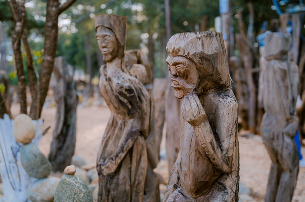 Những khúc gỗ đơn thuần được các nghệ nhân “thổi hồn”, trở thành những tác phẩm nghệ thuật mang đậm dấu ấn văn hóa và tâm linh của vùng đất thiêng. Những bức tượng gỗ dân gian được hình thành từ bàn tay tài hoa của các nghệ nhân bản địa, những người đã gắn bó với nghề điêu khắc gỗ từ lâu đời. Nhiều bức tượng còn kể lại những câu chuyện, huyền thoại về cuộc sống, thiên nhiên và các vị thần, tạo nên một không gian vừa hoang sơ vừa giàu cảm xúc. Phổ biến là tượng người ngồi buồn, sinh hoạt gần gũi hằng ngày như người phụ nữ mang thai, đôi vợ chồng đi rẫy, hút thuốc, uống rượu cần...
