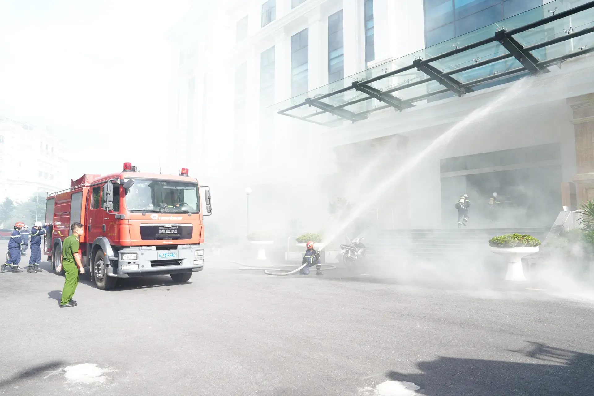 Trong đó, PCCC chủ động giống như một hệ thống giác quan nhạy bén cùng phản ứng nhanh. Đó là các hệ thống tự động phát hiện, cảnh báo (báo cháy, báo khói bằng đầu báo nhiệt, quang, khí) và dập tắt đám cháy (sprinkler, khí, bọt). Kèm theo đó là hệ thống đèn, biển chỉ dẫn thoát hiểm, tăng áp cầu thang, hút khói và các thiết bị chữa cháy ban đầu.