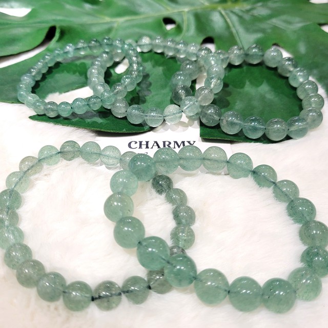 Vòng tay tam tai dâu tây xanh được tạo tác từ sự phối hợp hài hòa giữa Thạch Anh dâu tây xanh và Moonstone, kết hợp cùng Charm Hoa Sen Phú Quý và Charm bạc khắc Quẻ Trạch Sơn Hàm.