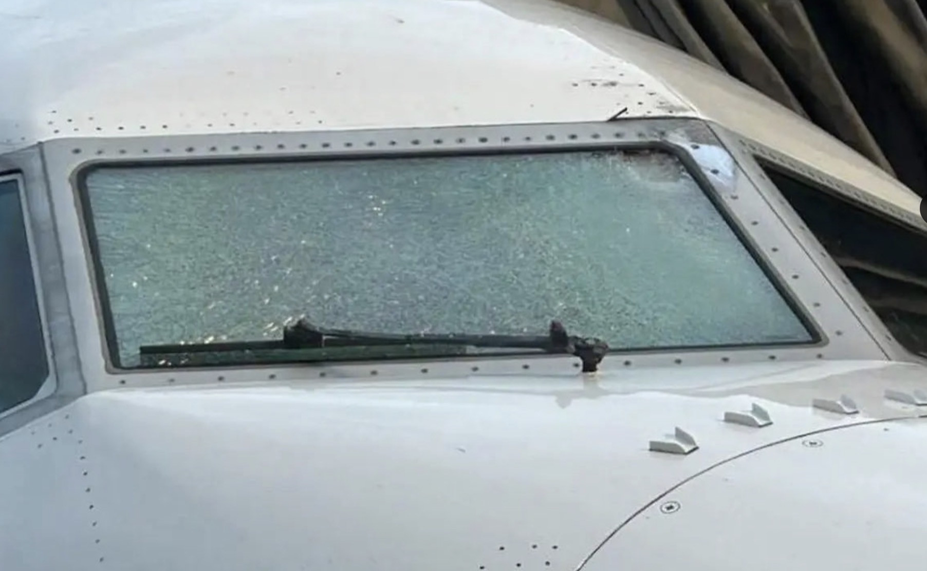 Máy bay bị vỡ kính chắn gió sau khi va chạm với vật thể bí ẩn. Ảnh: X
