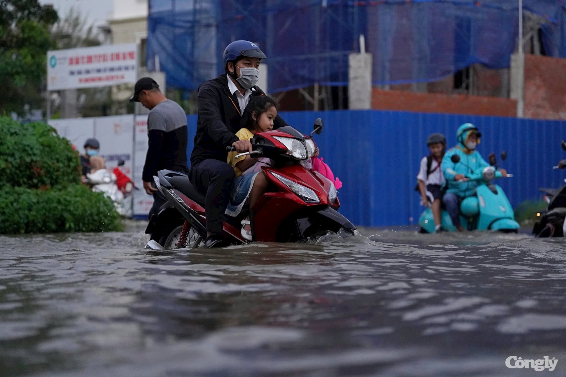 Triều cường kết hợp mưa khiến đường sá thành sông.