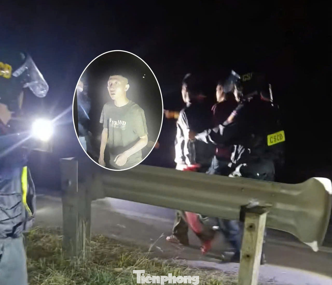 Hình ảnh lực lượng chức năng tỉnh Lạng Sơn bắt giữ 3 đối tượng trên tuyến đường quốc lộ 1A thuộc địa phận tỉnh Lạng Sơn và hình bóng đối tượng thứ 4 lần trốn.
