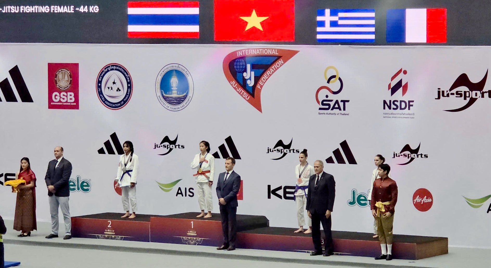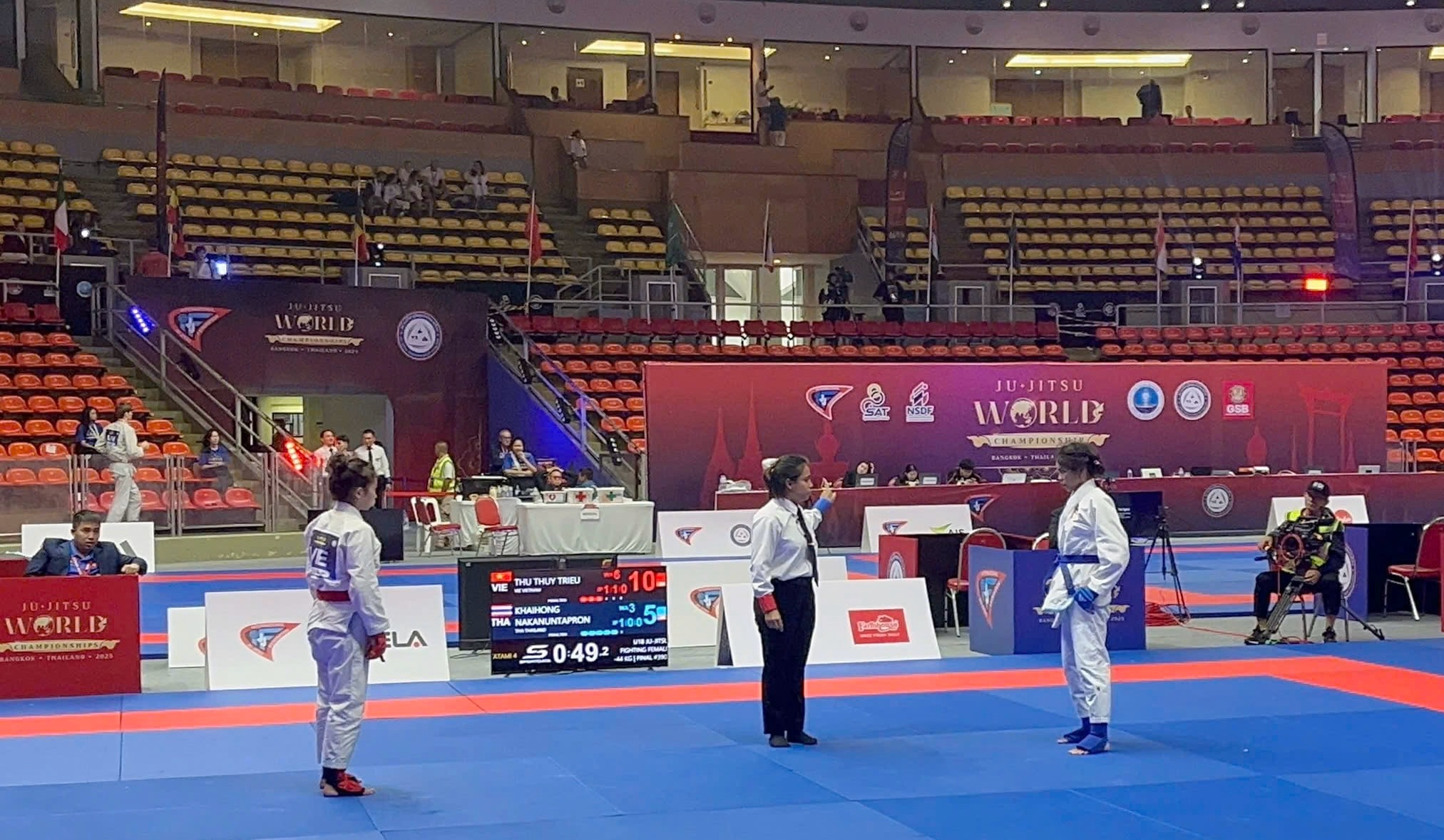 VĐV Triệu Thu Thủy (Cao Bằng) giành Huy chương Vàng nội dung đối kháng Fighting U18,hạng cân dưới 44 kg tại Giải Vô địch, Vô địch Trẻ và U14 Jujitsu thế giới năm 2025.