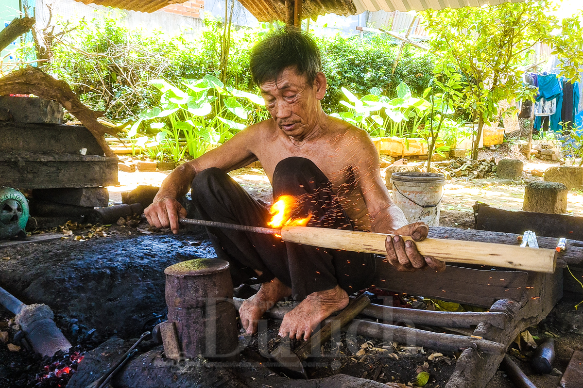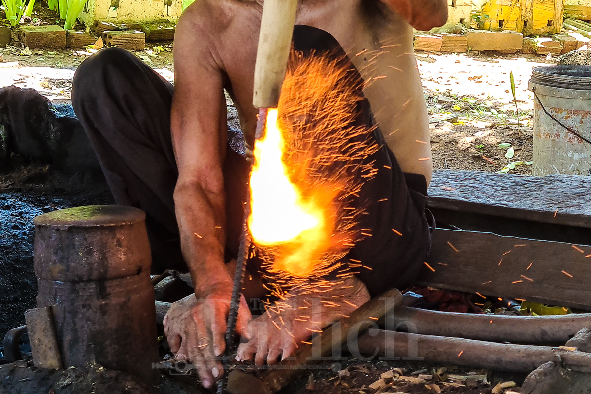 Hòa cùng tiếng gió dịu nhẹ sượt qua tai là âm vang chan chát quen thuộc của tiếng búa đập mạnh vào sắt thép, tạo nên giai điệu lao động đầy sức sống. Đó là âm thanh của một thời cần lao chưa từng vắng bóng, phát ra từ lò rèn nhỏ của chú Võ Văn Búa – người thợ già đã gắn bó hơn nửa thế kỷ với lửa đỏ.